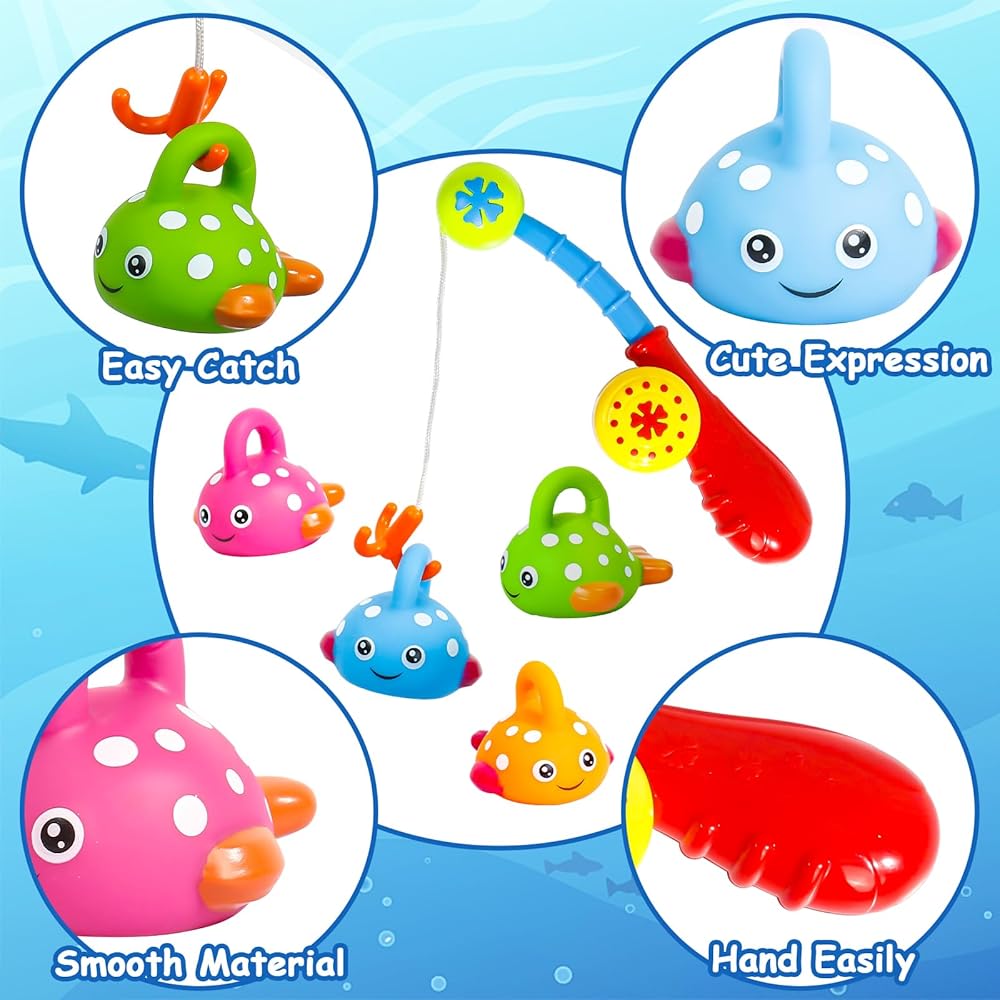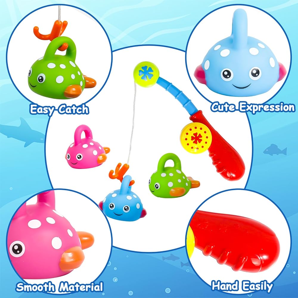 🐟أفضل لعبة حمام للأطفال: أداة تعليمية رائعة لمساعدة الأطفال الصغار على تنمية وتطوير التنسيق بين اليد والعين والقدرة على توازن الجسم عن طريق اصطياد الأسماك على الماء باستخدام صنارة الصيد.