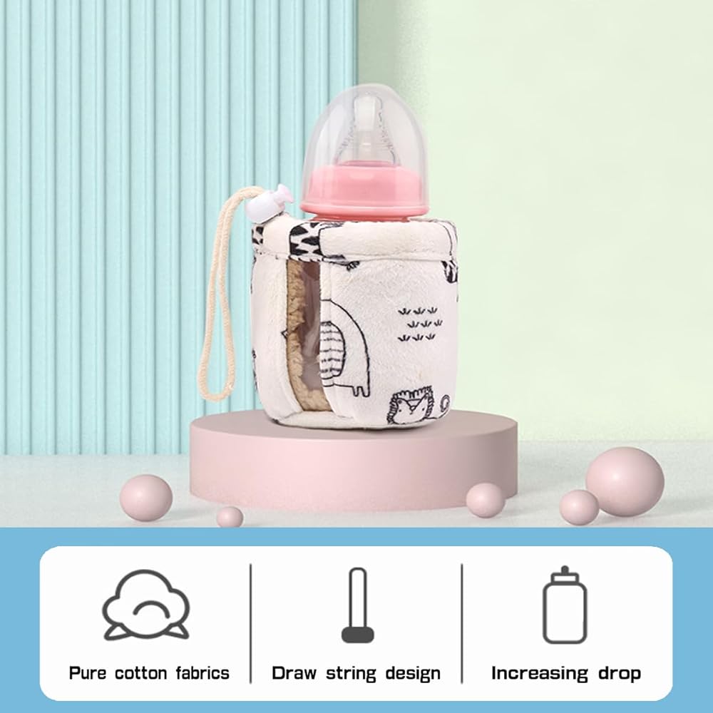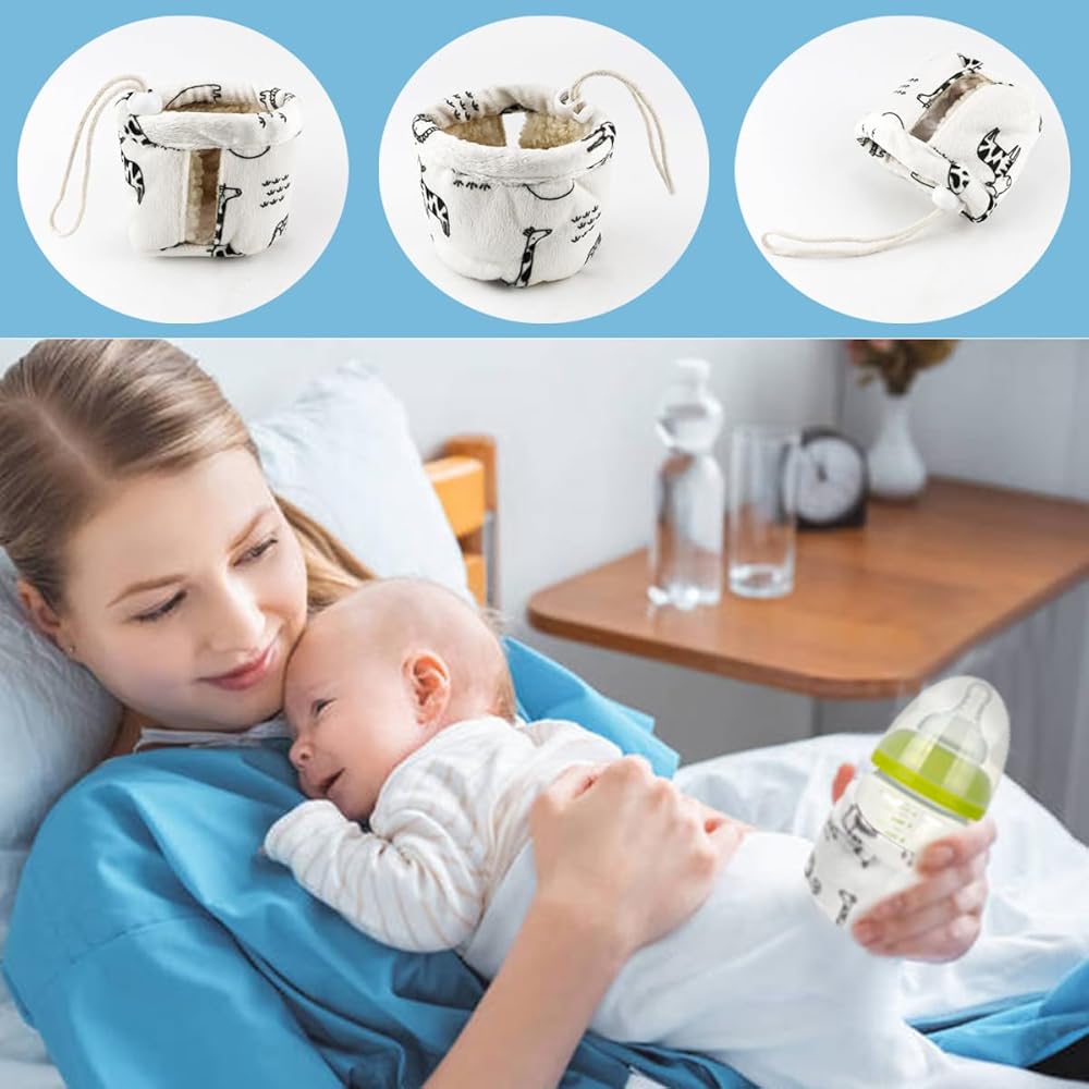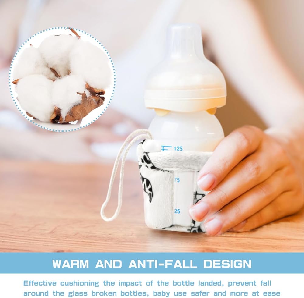 مواد موثوقة: الجزء الخارجي من غطاء زجاجة الطفل مصنوع من القطن والجزء الداخلي مصنوع من صوف الحمل السميك. مريحة الملمس، طبيعية وغير ملوثة.