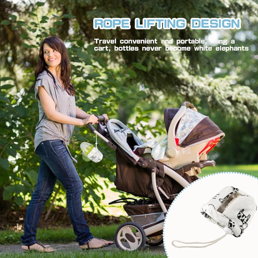 سهولة الحمل: يأتي غلاف زجاجة الرضاعة مزودًا بخيط قوي بحيث يمكن حملها أثناء التنقل وتعليقها على عربة الأطفال. لن تشكل الزجاجة عبئًا عليك.