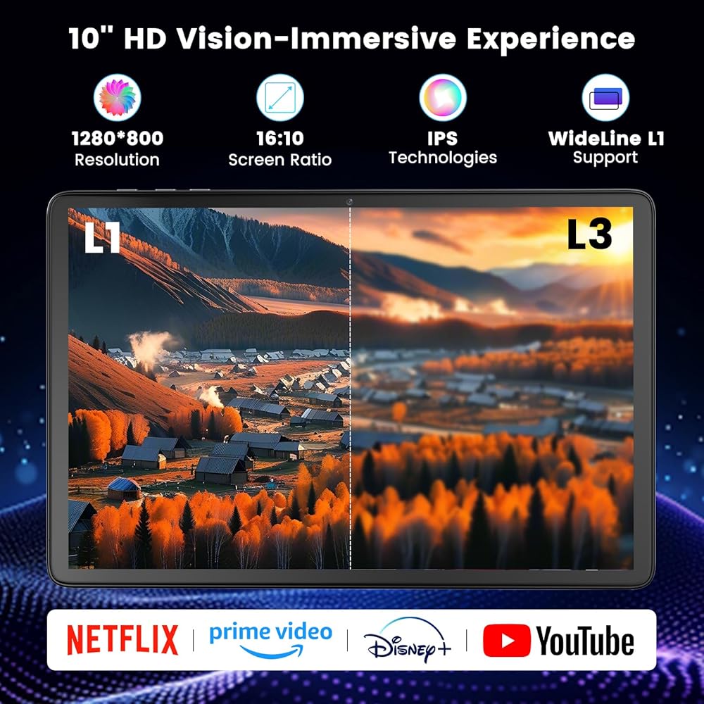 【Vivid 2K FHD Display】The 10.95-inch 1920*1200 HD screen of the electronics tablet with 16:10 aspect ratio and In-Cell touch technology delivers crisp visuals and responsive interaction.The In-Cell touch technology reduces glare and delivers sharper colors than standard LCD panels. You can enjoy the latest Widevine L1-certified shows with the 2K FHD screen tablet on Netflix, Youtube.