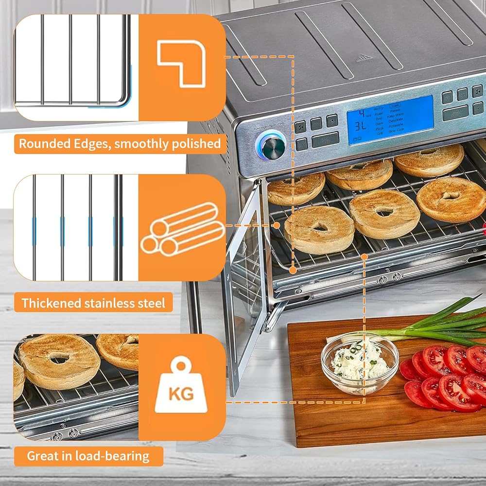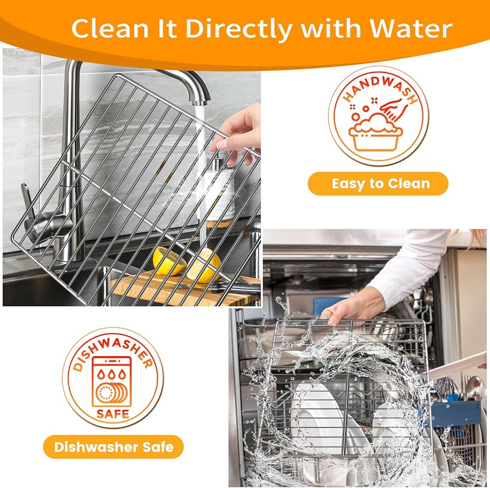 We are committed to providing customers with premium products, and customer's satisfaction is our top priority. Our air fryer racks are made of food grade stainless steel, meets FDA's standards and does not contain BPA. Non-toxic and tasteless. It's an ideal choice for enjoying healthy and safe cooking.