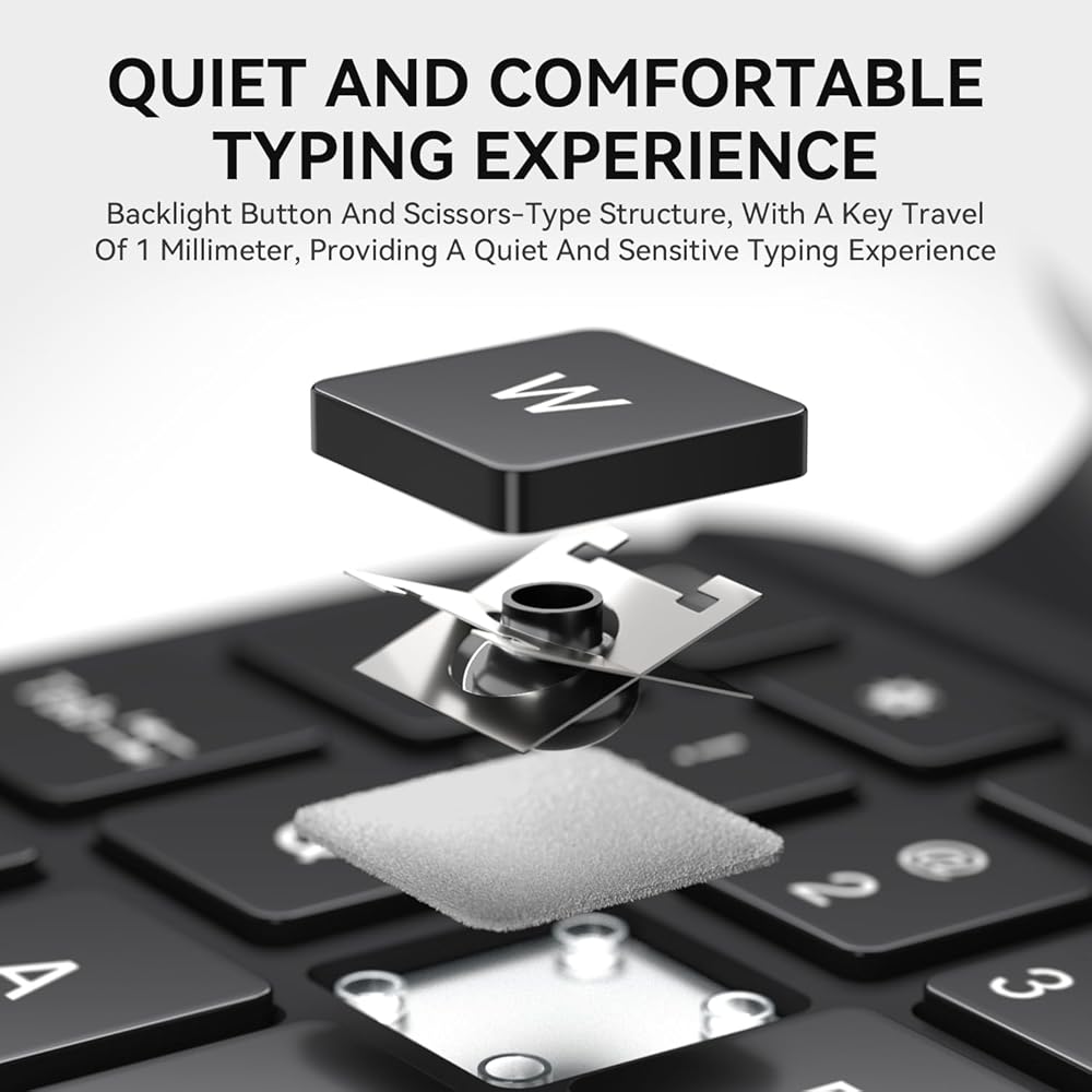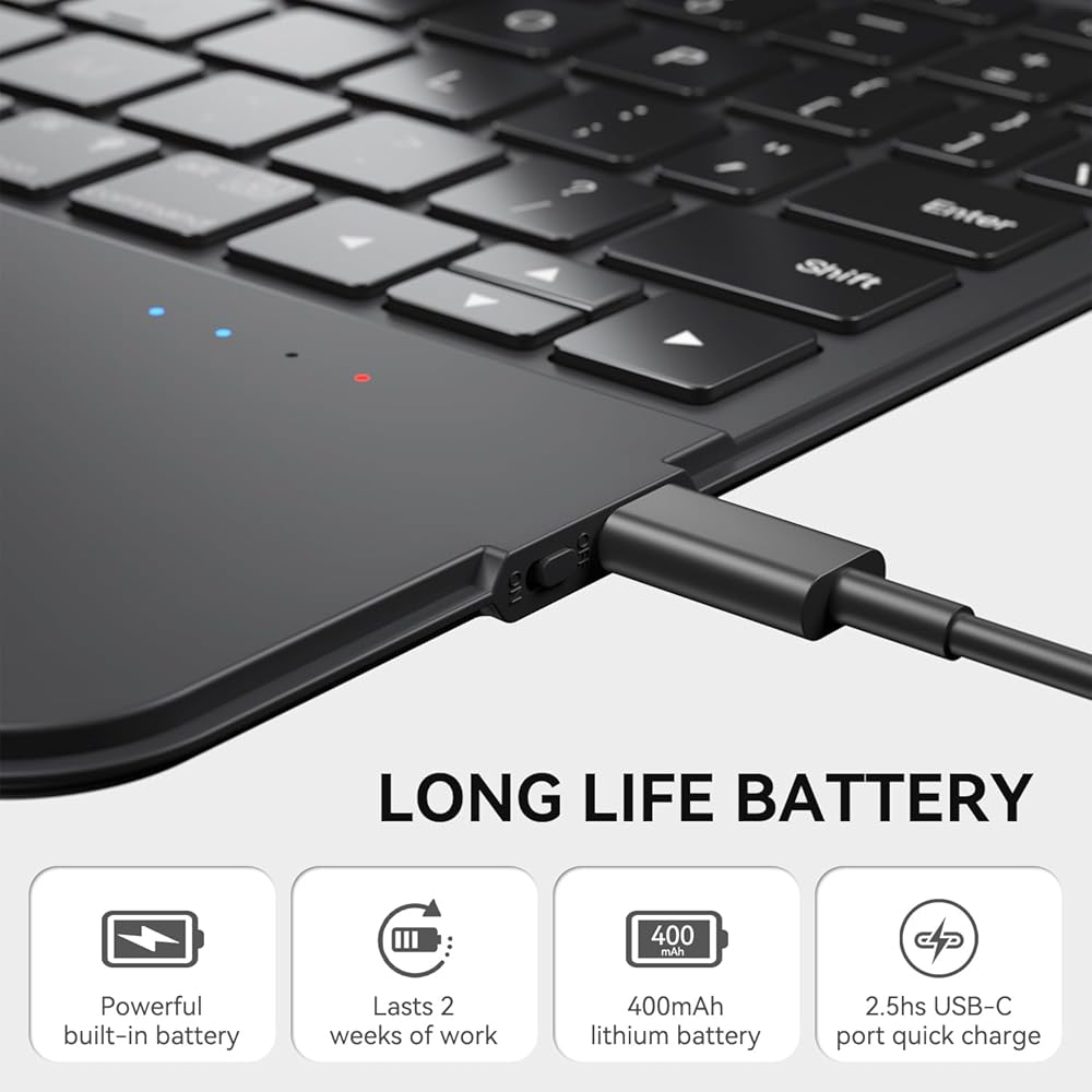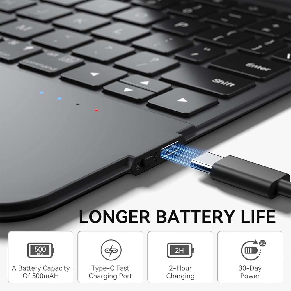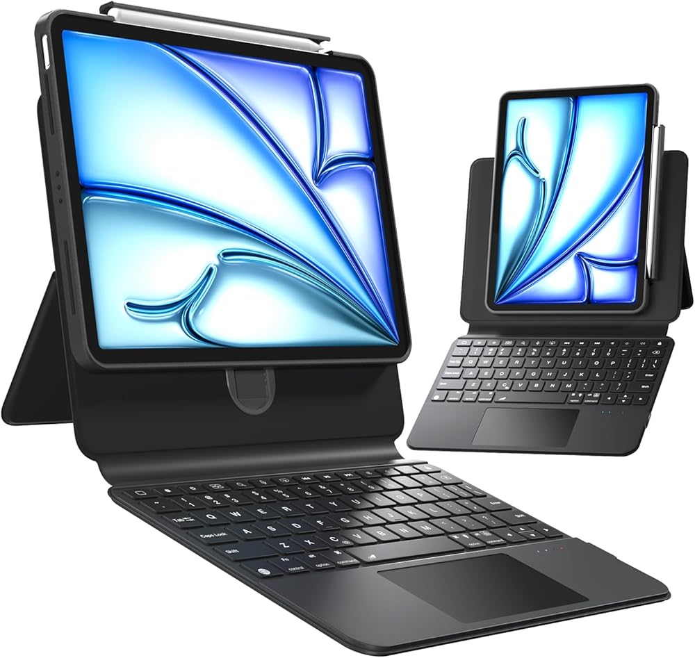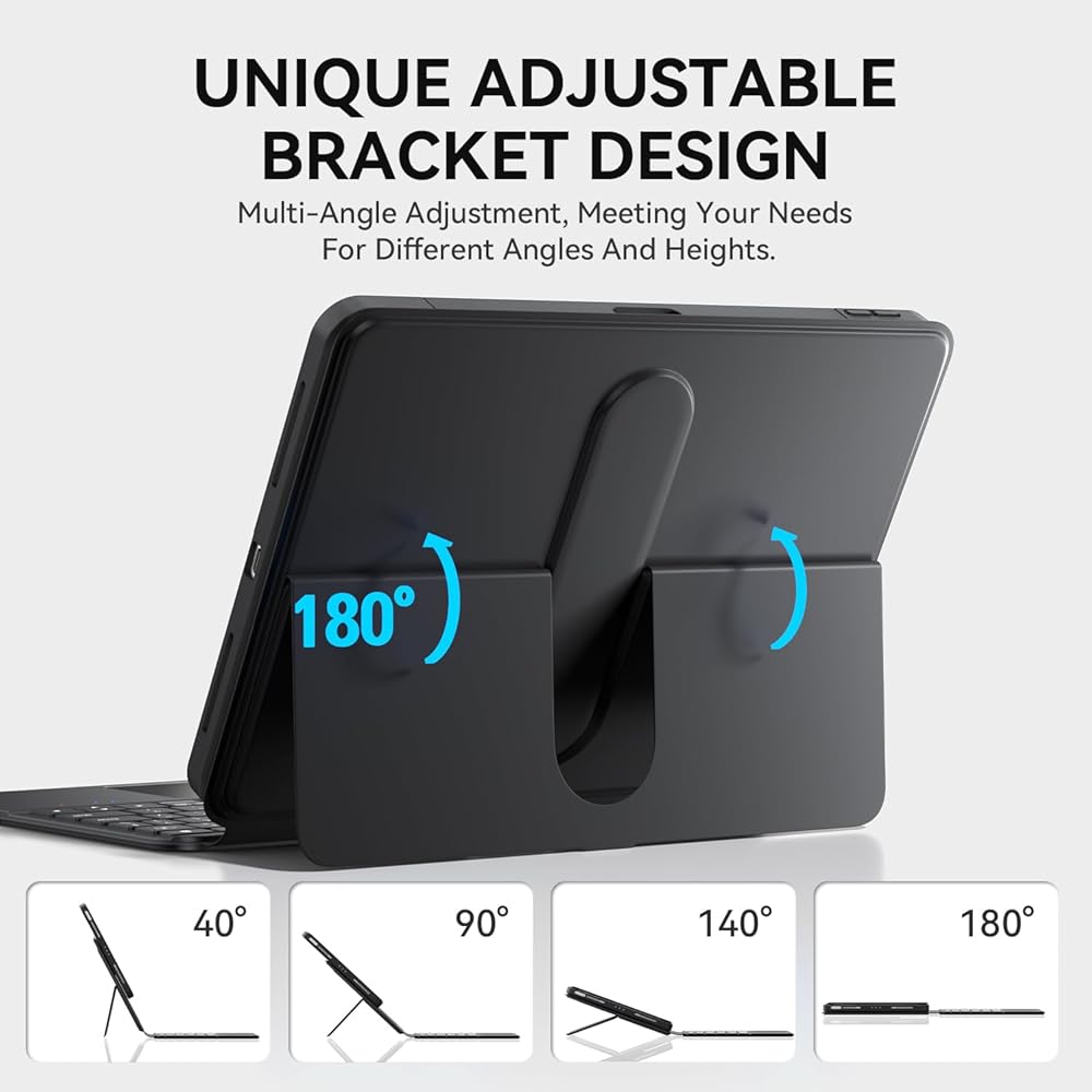 360° Rotating iPad Detachment: Detach your iPad with its protective shell from the keyboard base in seconds. Rotate 360° for tablet, tent, or laptop modes while keeping the keyboard stationary.