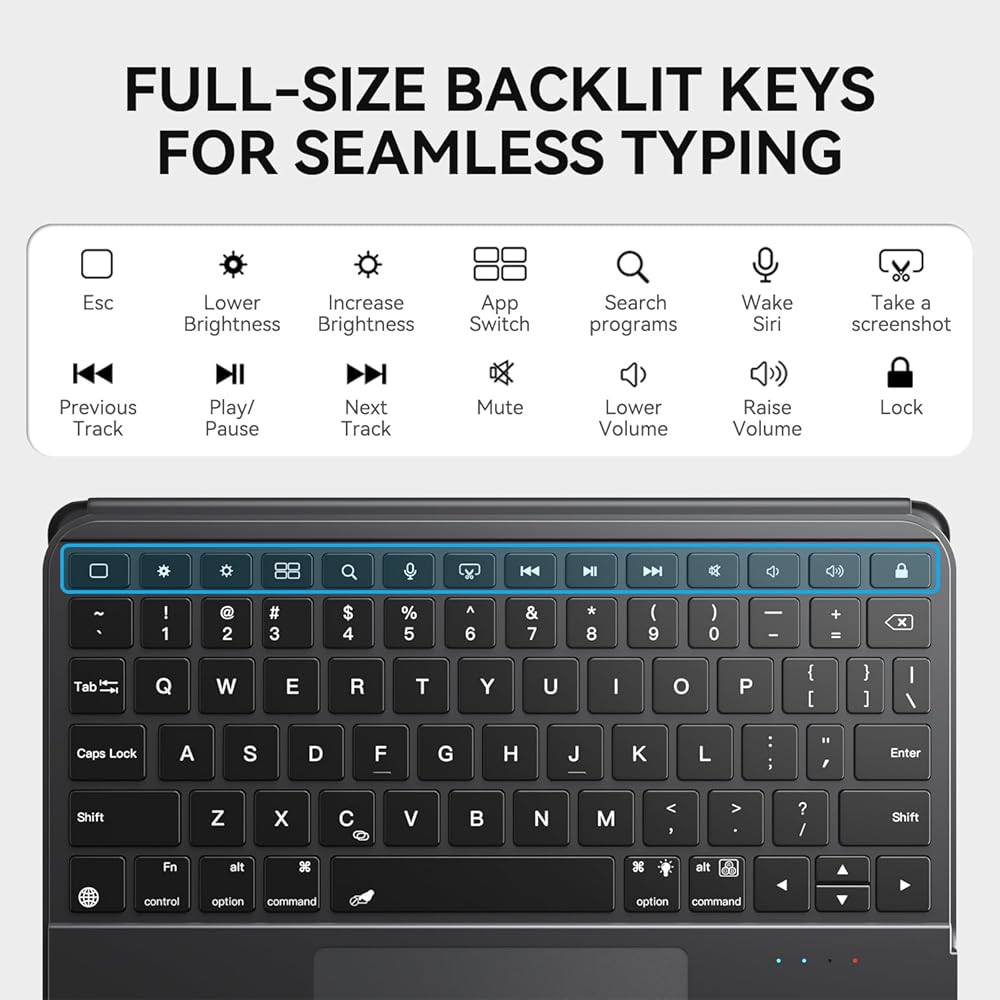 7-Color RGB Backlit Keys & Gesture Touchpad: Cycle through 7 backlight colors via Fn+Alt. Precision touchpad supports iPadOS swipes, pinches, and 3-finger app switching.