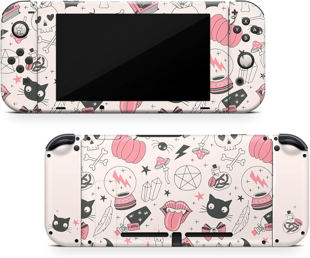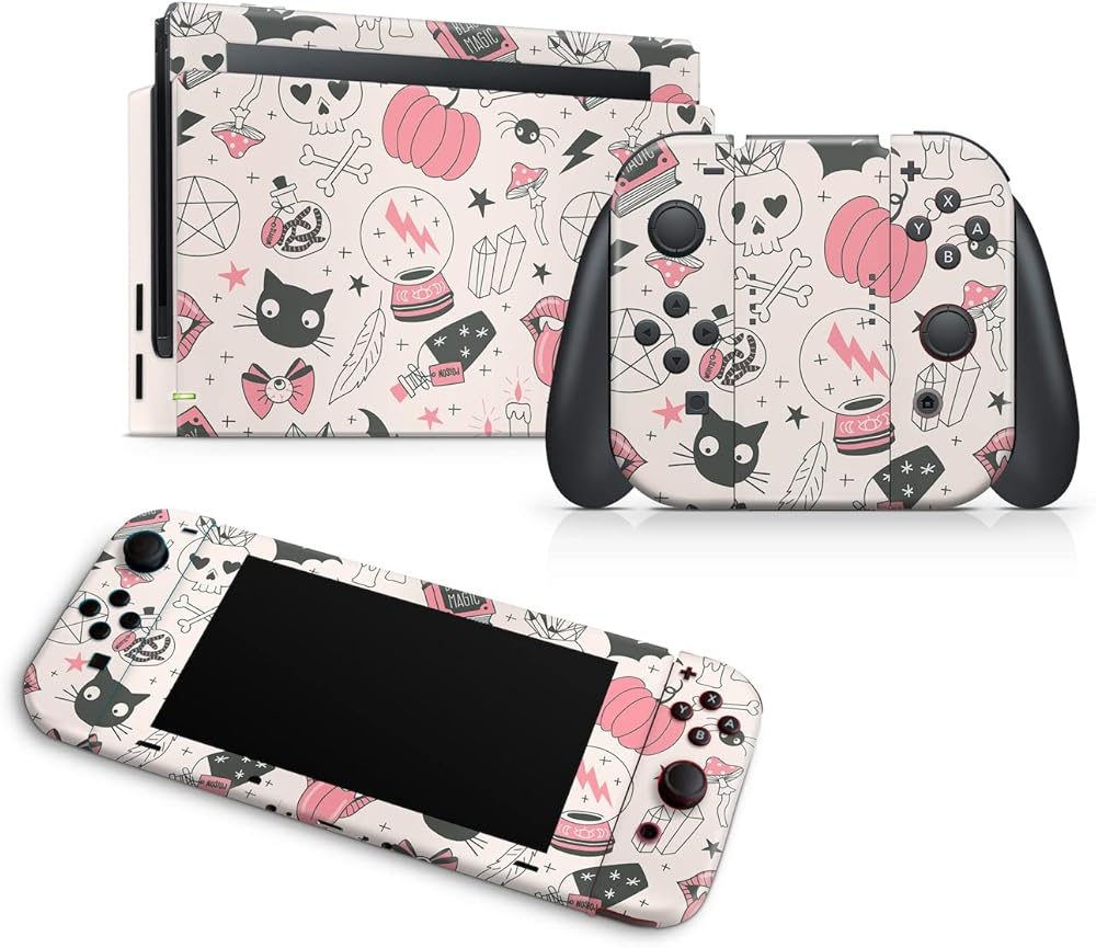 Zoomhitskins متوافق مع مفتاح Switch Skin Cover Magical Halloween Black Cat Magic Viny Sconer Wrappics ، مصنوع في الولايات المتحدة الأمريكية