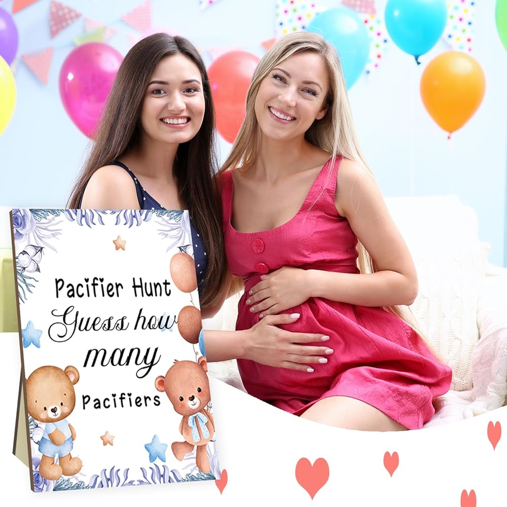 DESIRABLE SIZE: The wooden sign measures 5x7 inches, making it easy to display at the venue. The non-toxic and safe pink acrylic pacifiers are ready for hiding, providing a worry-free and enjoyable experience for everyone.