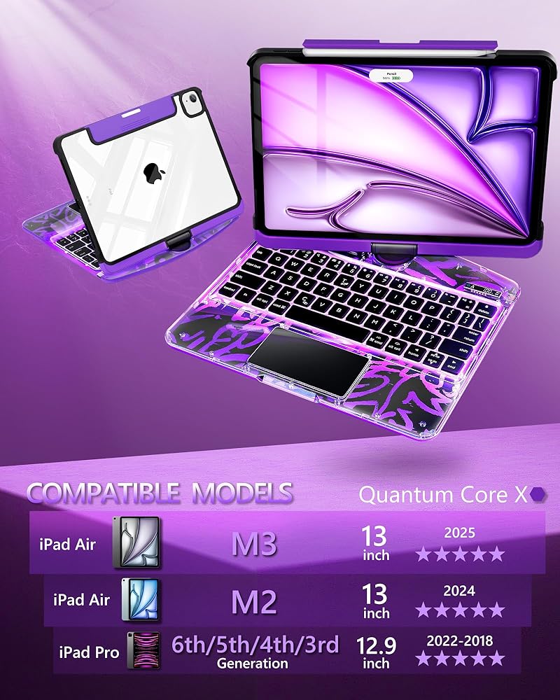 ✅【 متوافق مع iPad Pro 12.9 "(6/5/4th/3rd Gen ، 2022-2018)】 تم تصميم حالة لوحة المفاتيح هذه لتناسب طرازات iPad Pro 12.9 بوصة من 6th (2022) ، 5th (2021) ، 4th (2020) ، و 3rd (2018). يوفر قواطع دقيقة للمنافذ والكاميرا ، مما يضمن ملاءمة آمنة وسلسة. تأكيد نموذج جهازك قبل الشراء.