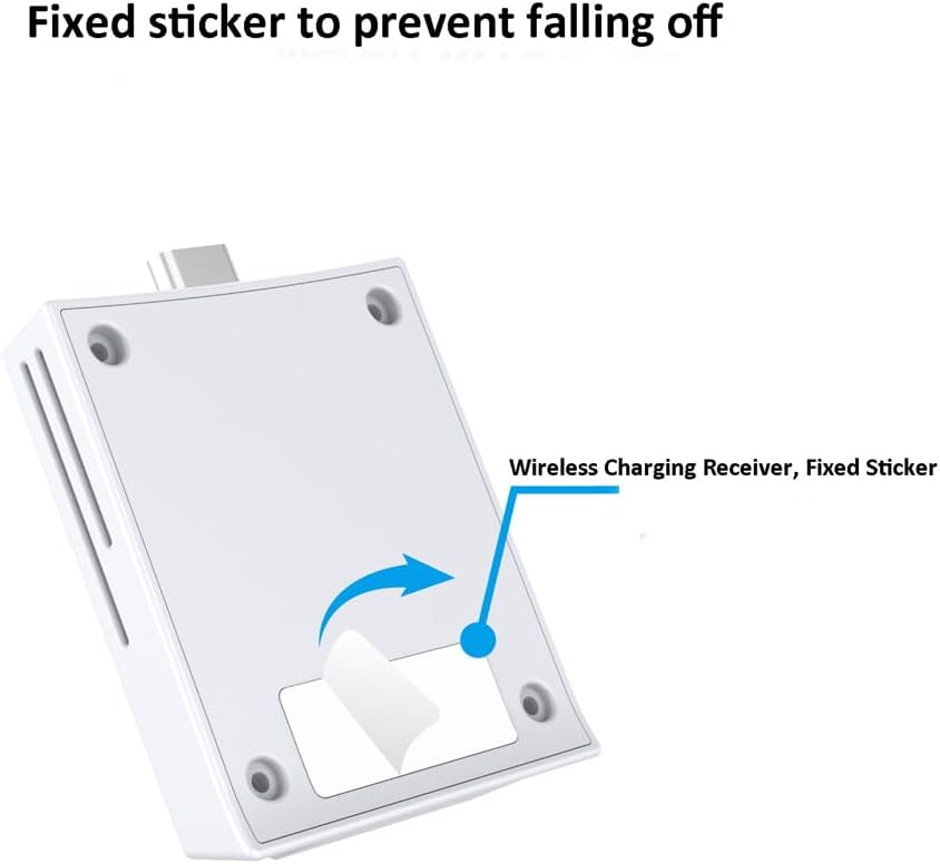 1). Insert the receiving end of the wireless charger into the charging port at the end of the streaming handle, and glue the fixed sticker with the main body