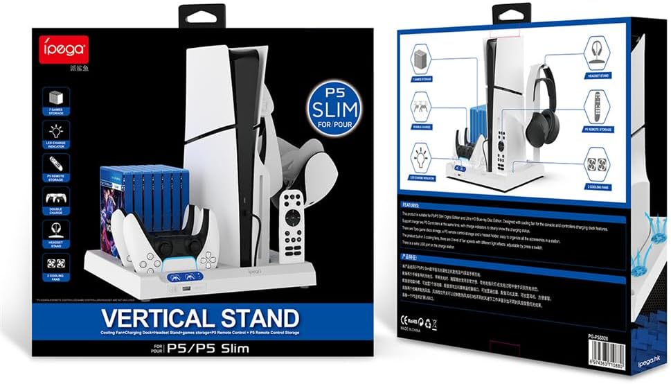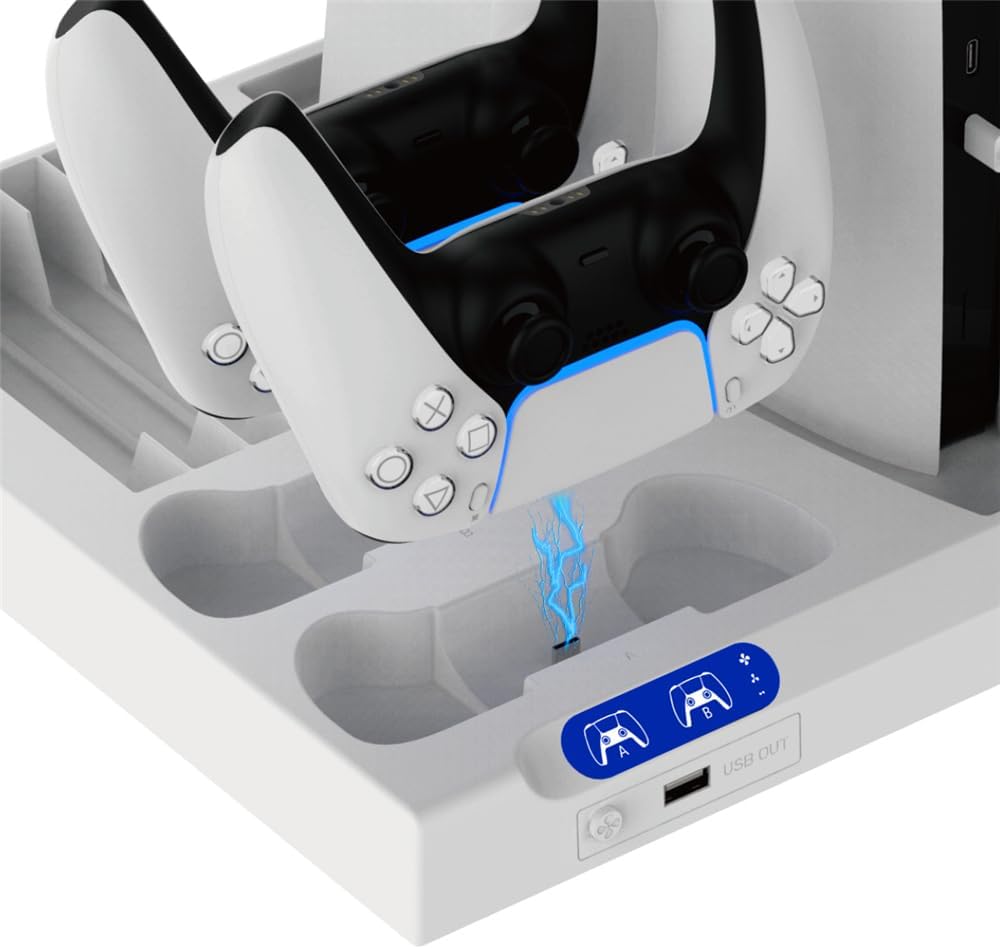 Designed for the new new P5 Slim host cooling and ps5 controller charging design