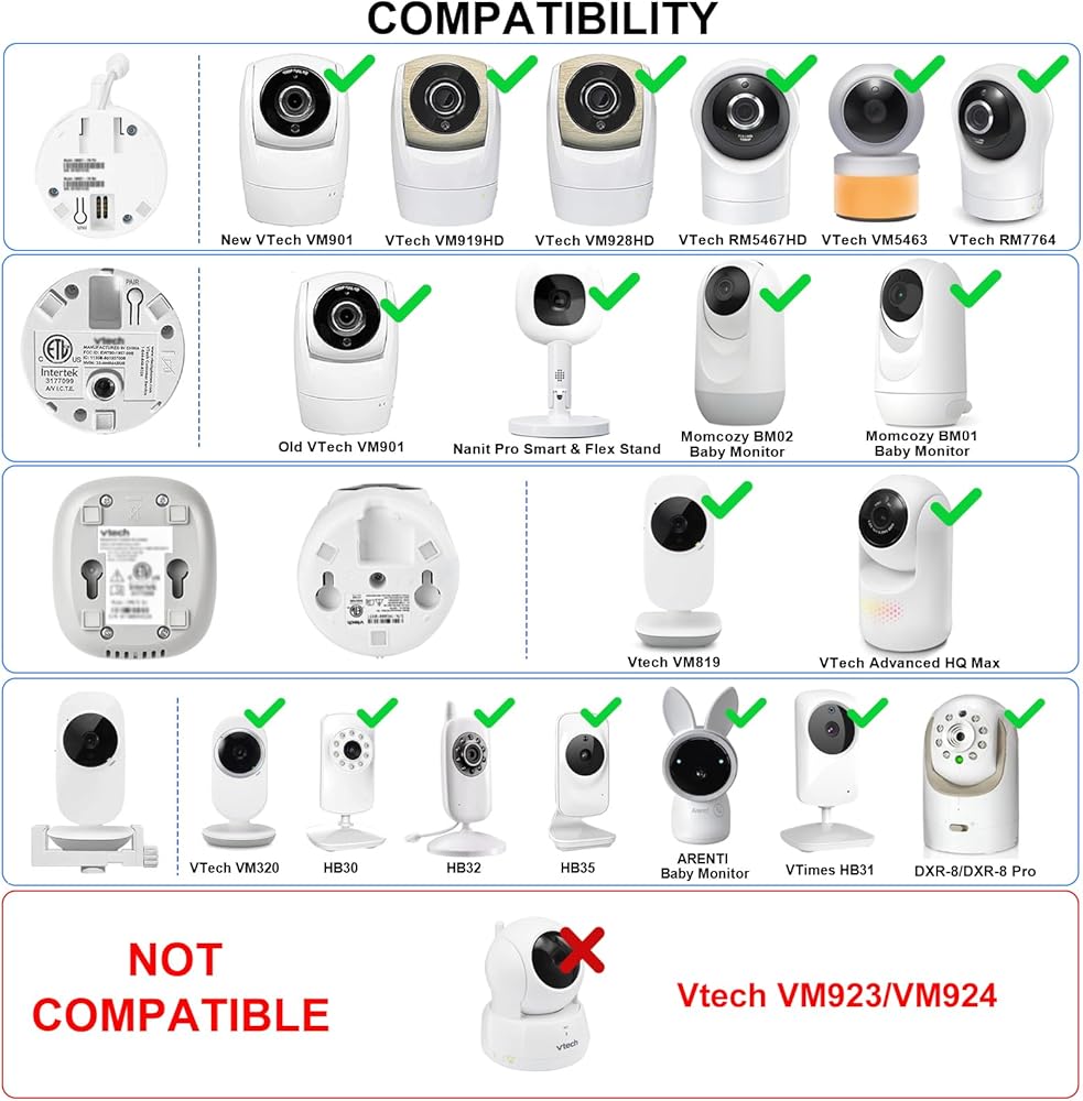 【التوافق الواسع】 موقف أرضية مراقبة الطفل هذا المصمم خصيصًا لـ VTech Advanced HQ MAX ، Advanced HD Plus ، VM819 ، VM901HD ، VM919HD ، VM928HD ، VM818HD ، VM5254 ، VM5255 ، VM350 ، VM3252 ، VM3254 ، VM3258 ، VM3258 ، RM5754HD ، RM5764HD ، RM5467HD ، RM5854HD ، RM5856HD ، RM5866HD ، RM7754HD ، RM7764HD ، RM7766HD ، والمزيد. إنه أمر رائع أيضًا بالنسبة لشاشات الأطفال الأخرى مع المسمار المواضيع 1/4 بوصة قياسي. (ملاحظة: جميع شاشة الطفل غير متضمنة)