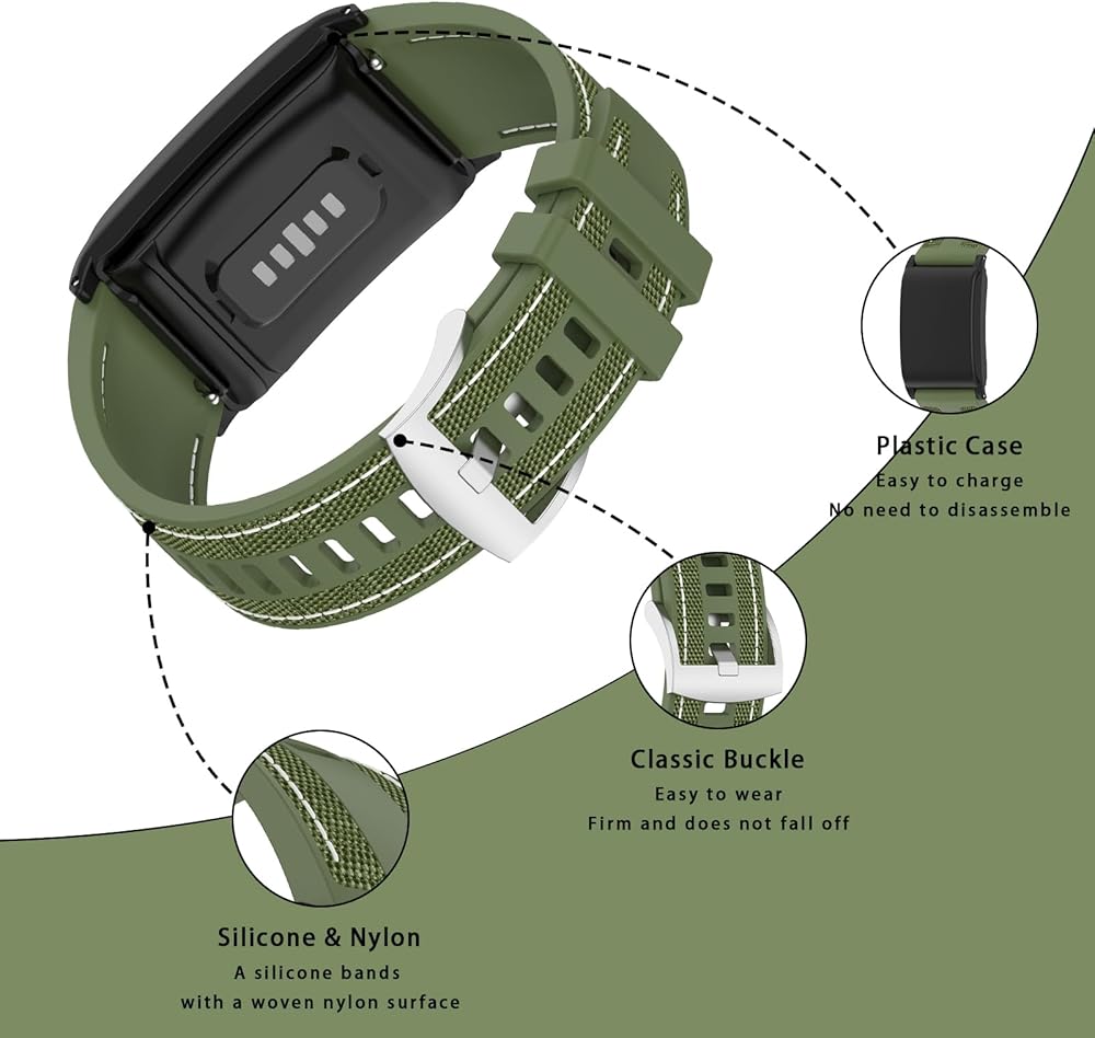 • [سيليكون ونايلون مركب]: يتكون هذا الشريط من السيليكون ، وسطح الشريط محكم بمواد نايلون منسوج. ناعم وخفيف الوزن ، إنه مريح للارتداء ومناسب للرياضة والراحة ، والحزام ممتع جماليًا ومريحًا