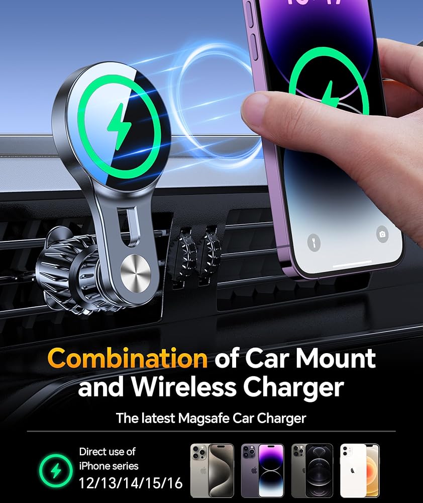 بالنسبة إلى شاحن Magsafe Mount Mount 15W Magsafe 【مغناطيسات أقوى】 لـ iPhone 16 ، شاحن السيارة اللاسلكي ، حامل الهاتف المغناطيسي ، شاحن الهاتف ، تنفيس شاحن للسيارة ،