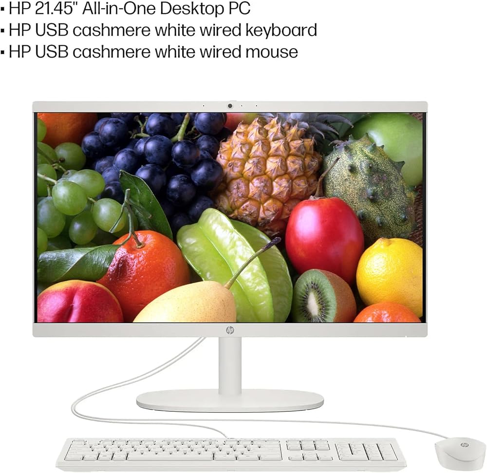HP 21.5 "FHD All-in-One Desktop Computer ، Intel Celeron J4025 ، Intel UHD Graphics ، سطح مكتب الأعمال ، ذاكرة الوصول العشوائي 16 جيجابايت ، 1 تيرابايت SSD ، WiFi 6 ، ترخيص Microsoft Office Lifetime ، وين 11 Pro-Cashmere White