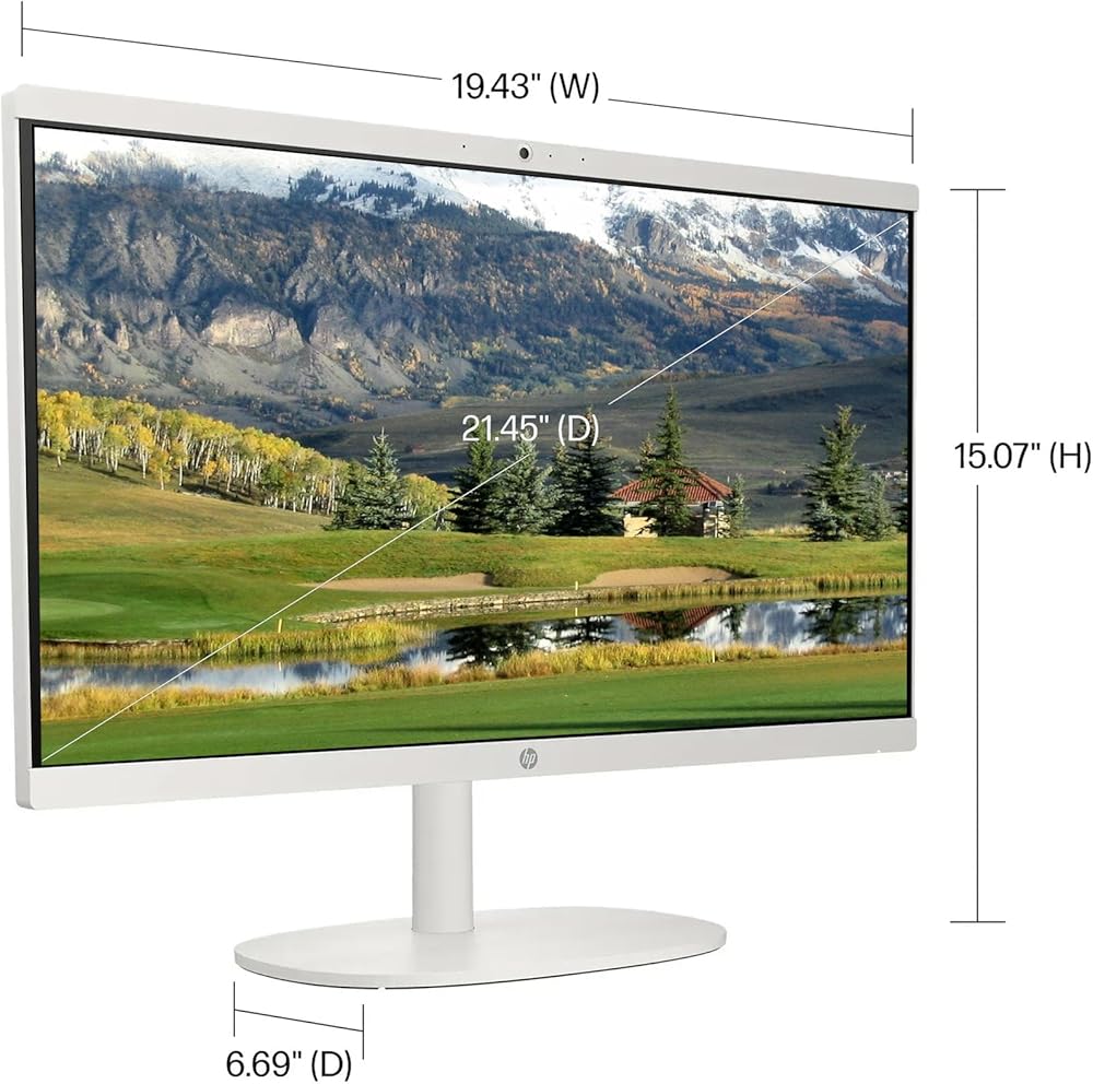 • Stunning 21.5" FHD Display: The HP All-in-One Desktop comes with a sleek 21.5-inch Full HD (1920 x 1080) VA ZBD anti-glare WLED-backlit three-sided micro-edge display, delivering crisp visuals and sharp detail. Whether you're watching movies, playing games, or working on creative projects, the display ensures exceptional clarity and color accuracy.