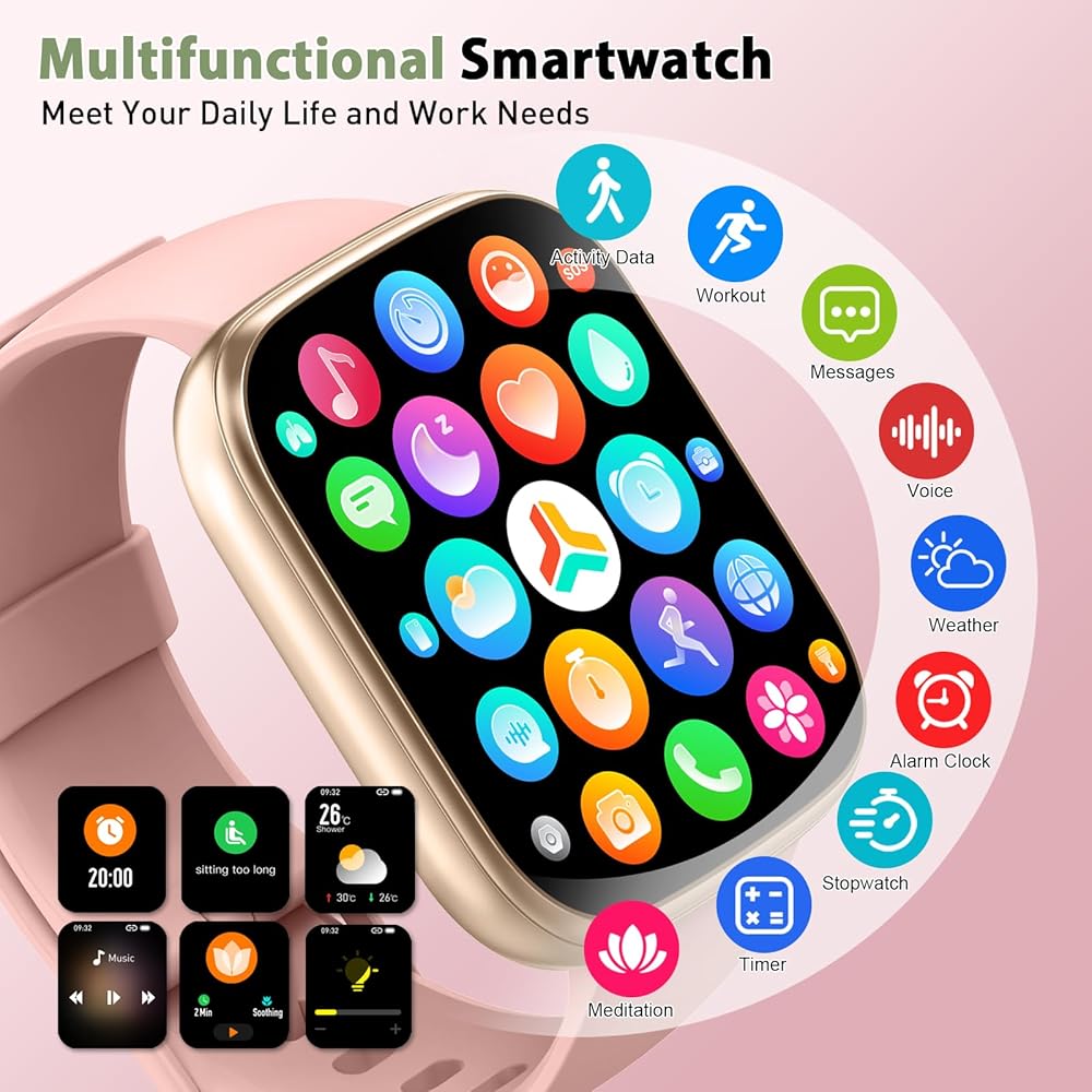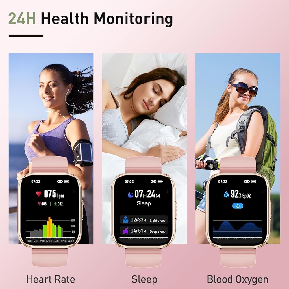 110+ Sport Modes and IP68 Waterproof: Fitness watch supports 110+ professional sport modes, covering diverse indoor/outdoor activities like running, cycling, and soccer to suit all fitness levels. Equipped with high-precision sensors, smartwatch accurately tracks steps, distance, calories burned, and workout duration to help analyze performance and optimize training plans. With an IP68 rating, it's resistant to sweat, rain, and handwashing (Not for swimming or hot showers)