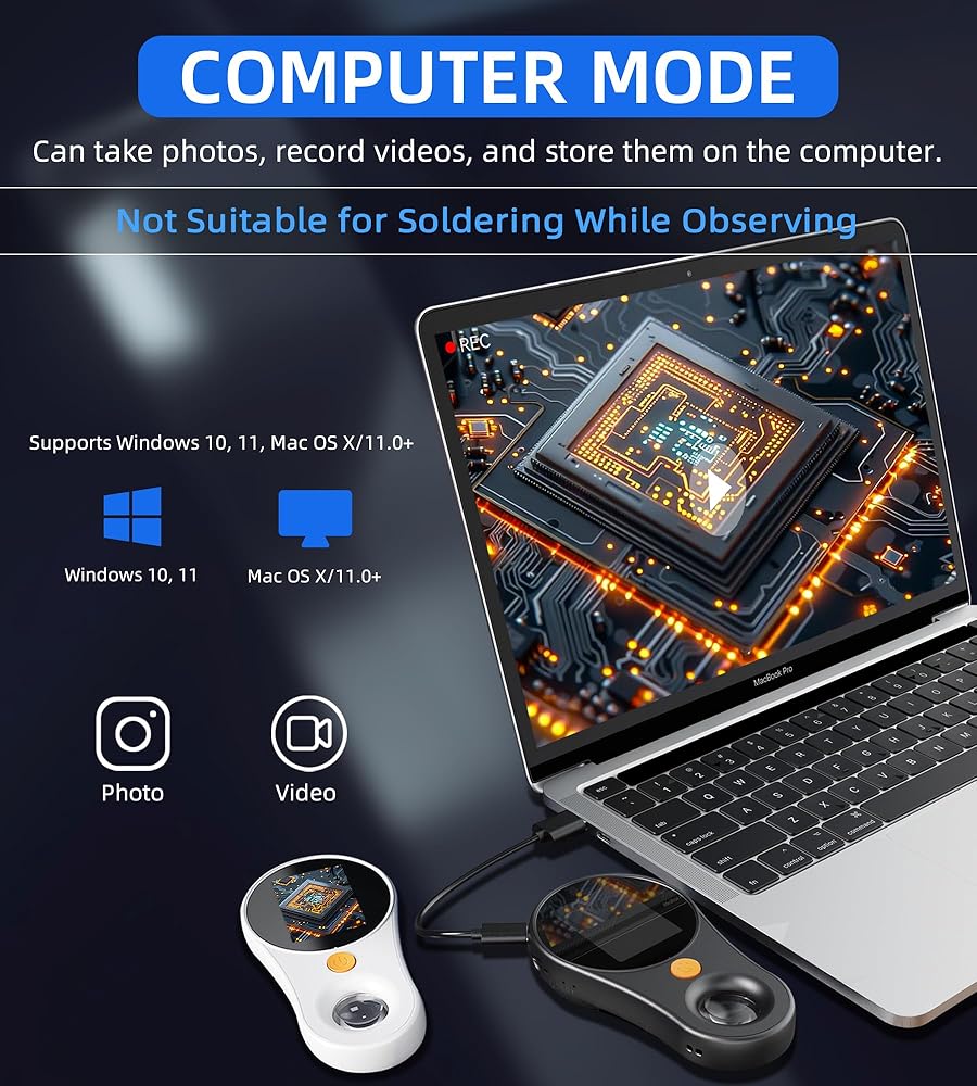 2.0 inch IPS color screen: In the digital microscope magnifier screen observation mode, you could take photos, and review in real-time. With storage space, which can take 100 pcs photos for viewing (photos cannot be downloaded, but can be deleted).