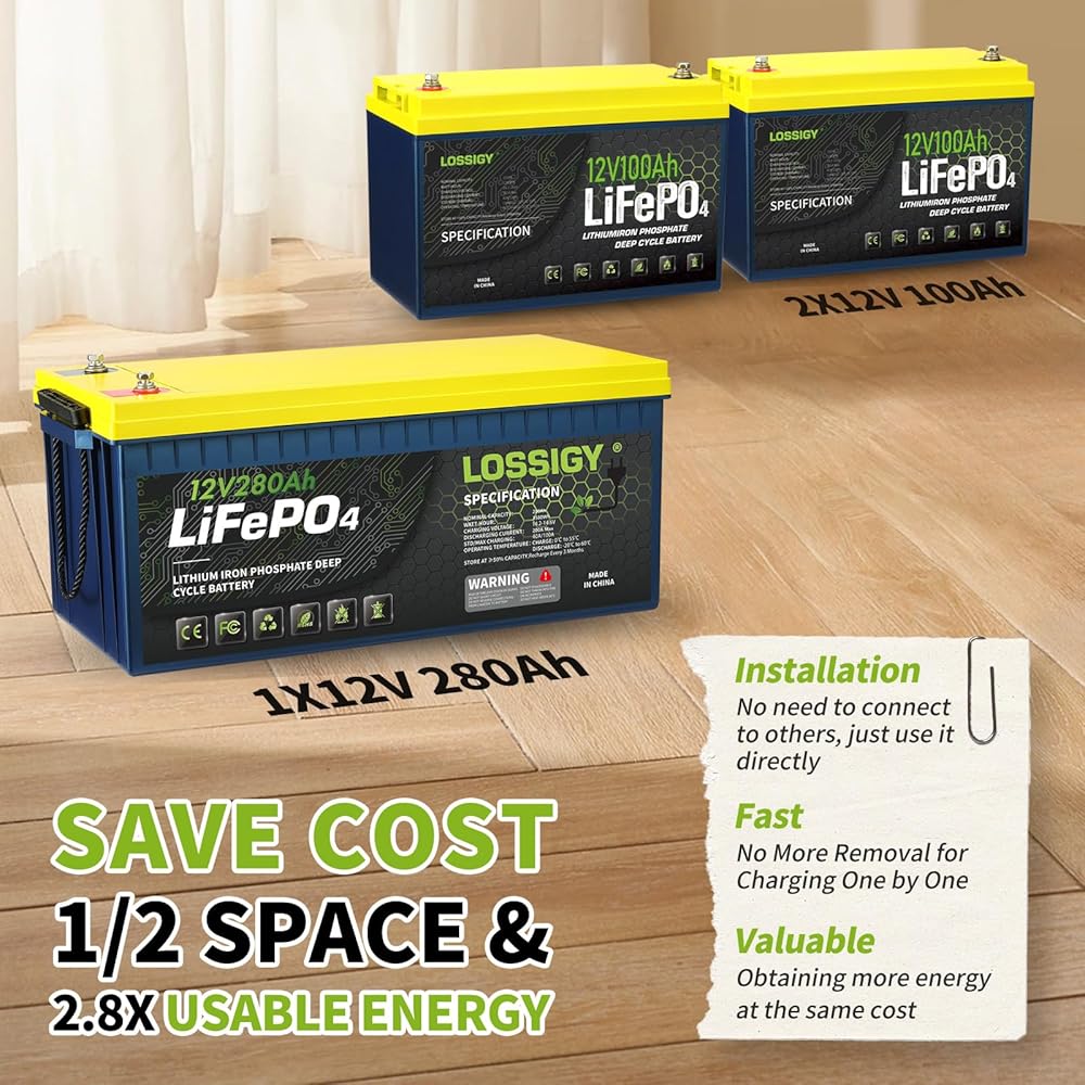 من السهل تثبيت: بطارية LiStigy 12v 100ah LifePo4 أسهل في التثبيت والتحرك مقارنة مع بطاريات حمض السلسلة التقليدية.