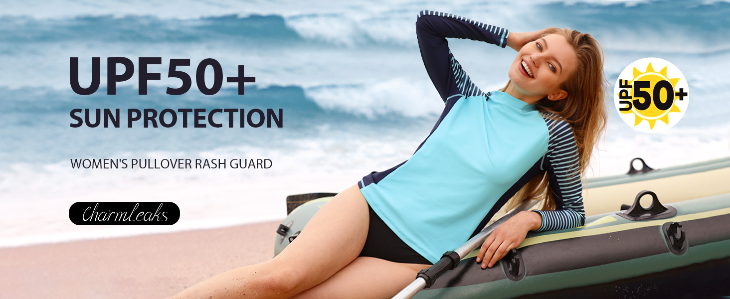 قميص سباحة برقبة وهمية وأكمام راجلان يسمح للأذرع بنطاق كامل من الحركة