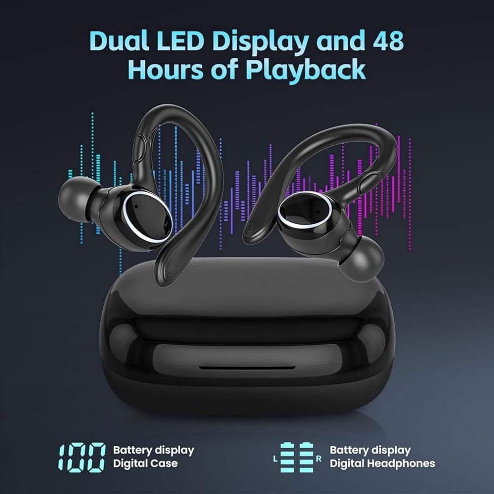 【LED Power Display & 50H Playtime】Featuring an innovative LED display, these earbuds make battery management effortless. The high-capacity charging case supports Type-C fast charging, fully charging in just 1.5 hours. With 5-7 hours of playtime per charge and up to 50 hours with the case, you'll never run out of power during flights, workouts, or commutes