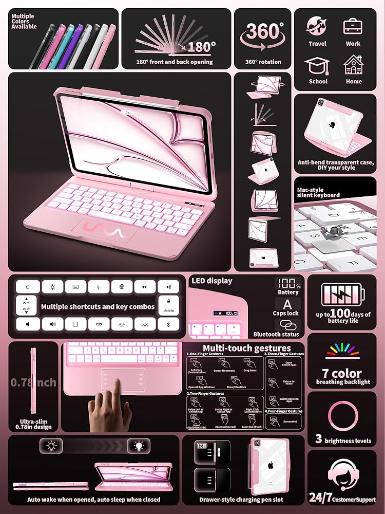 🔁🔄【 360 درجة مفصلية + 180 درجة - قم بالتكيف مع أي شيء】 التبديل بسرعة بين العمل أو الرسم أو وضع الترفيه. مفصلات متينة تم اختبارها للأداء طويل الأمد.