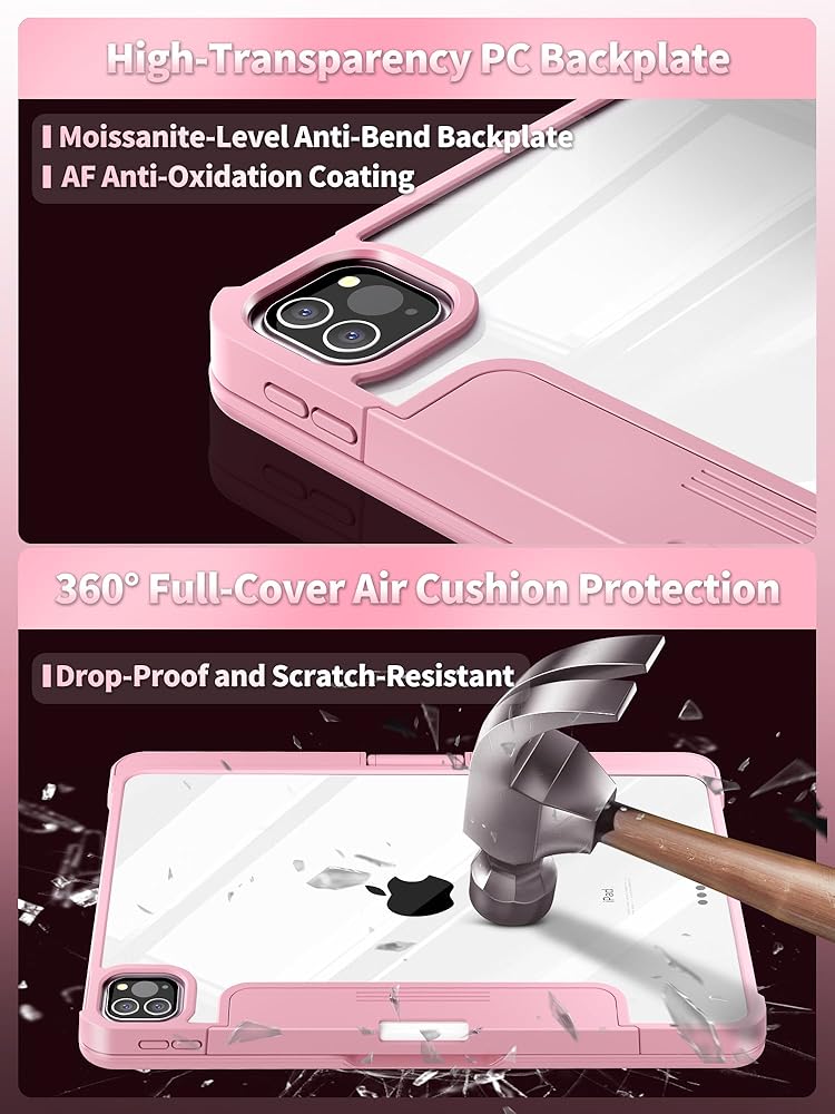 🛡 【Clear Back + Drop Protection】 إظهار تصميم iPad الخاص بك من خلال ظهر شفاف كامل ، بينما تحمي الحواف الناعمة والأكياس الهوائية المضادة للفرش كل زاوية.