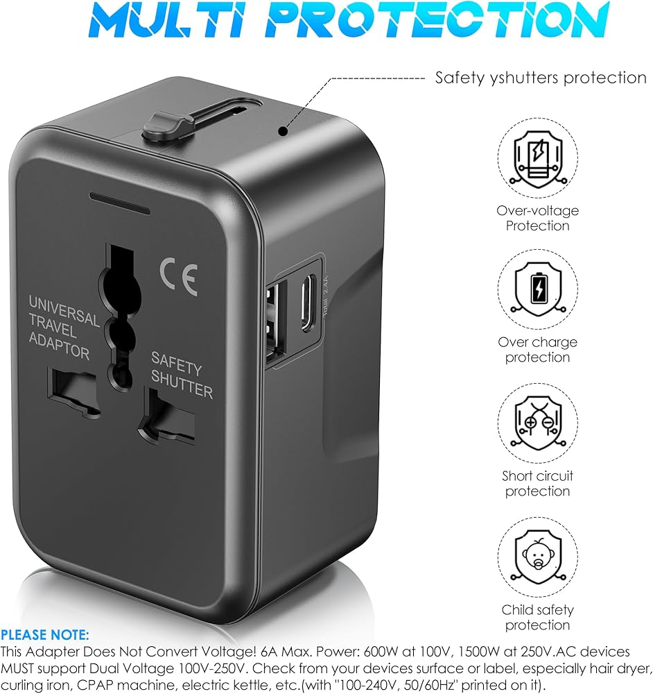 • 【متوافق في جميع أنحاء العالم】- يستوعب محول السفر المقابس من الولايات المتحدة والاتحاد الأوروبي والمملكة المتحدة و AUS ومناطق أخرى ، يغطي حوالي 160 دولة ، مثل الولايات المتحدة ، فرنسا ، لندن ، ألمانيا ، النمسا ، سويسرا ، أوروبا ، الدنمارك ، إلخ ، مثالية للسفر الدولي.
