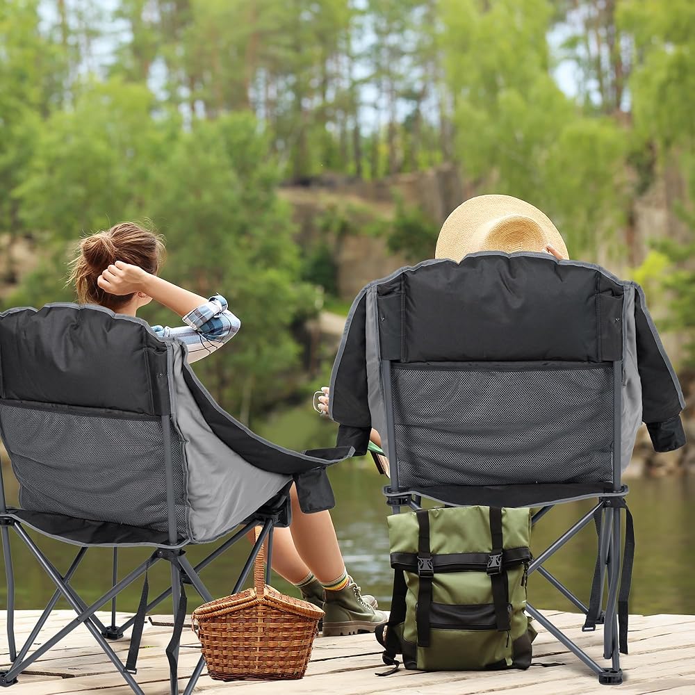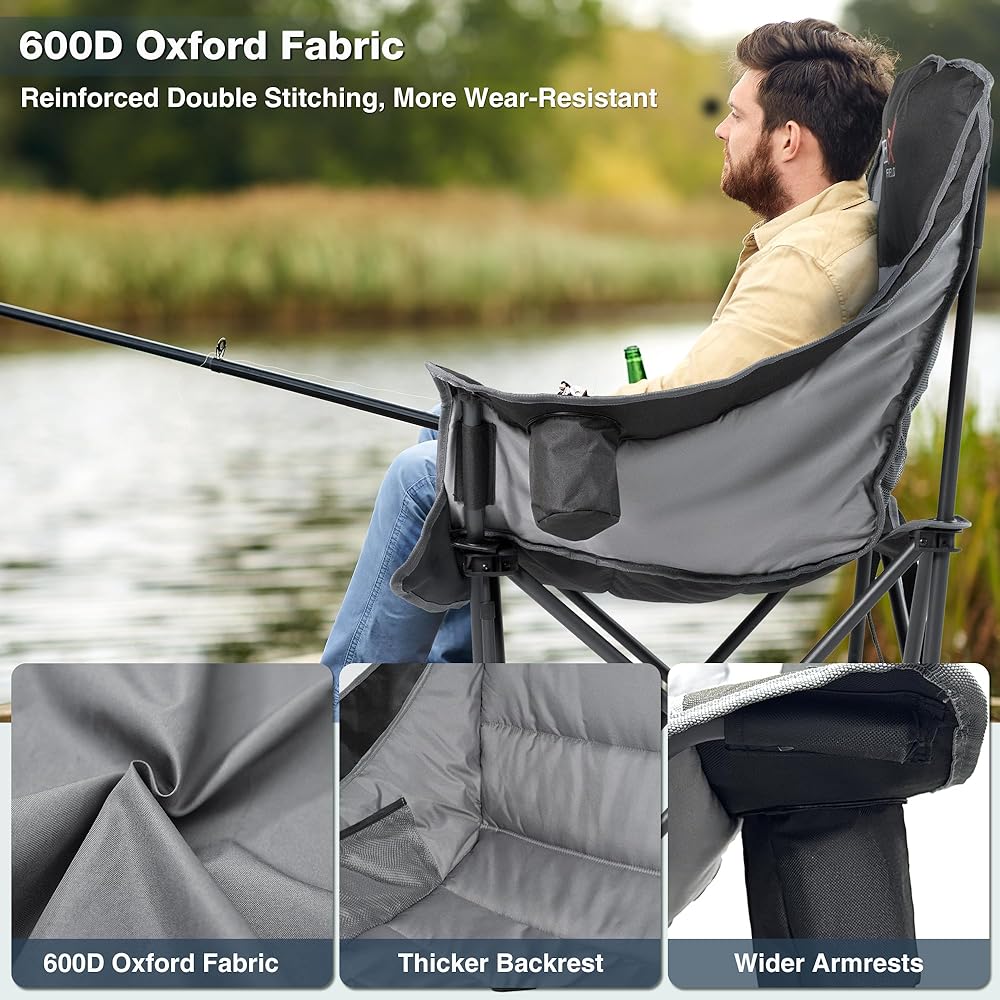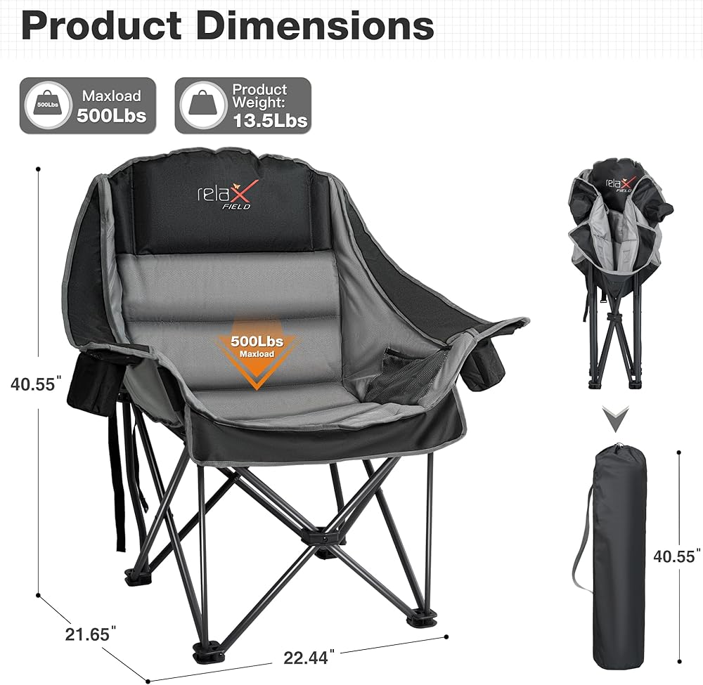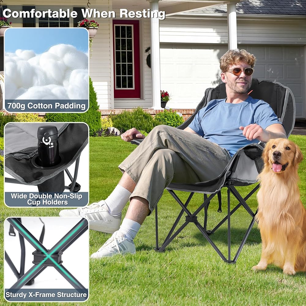 كرسي التخييم المتضخم: الحجم المفتوح هو 22.44 "x24.65" x40.55 ". هذا الكراسي في الحديقة كبيرة بما يكفي لمعظم البالغين لتمتد بحرية من أجل الراحة القصوى. مملوءة بحشو عالي الكثافة ، يضمن هذا الكرسي في الهواء الطلق تجربة مريحة حتى أثناء الجلوس المطول