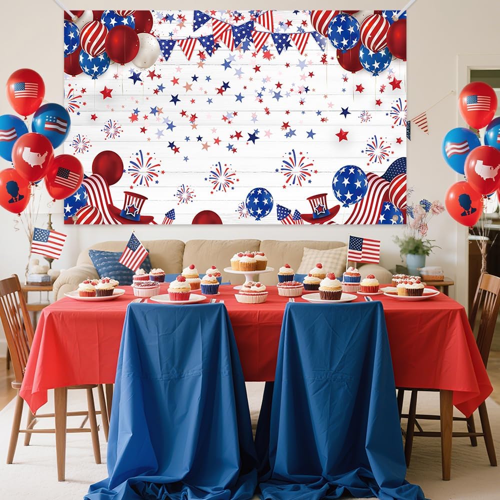 الرابع من يوليو الخلفية: ستتلقى خلفية يوم استقلال 1PCS ولفافة واحدة من الحبل ، وهو ما يكفي لتلبية الديكور في منزلك واحتياجات الصور. (أرسل عن طريق مطوي ومقاطع ومجموعات الوقوف غير مدرجة). الحجم: 180x110 سم / 70.8x43.3 بوصة
