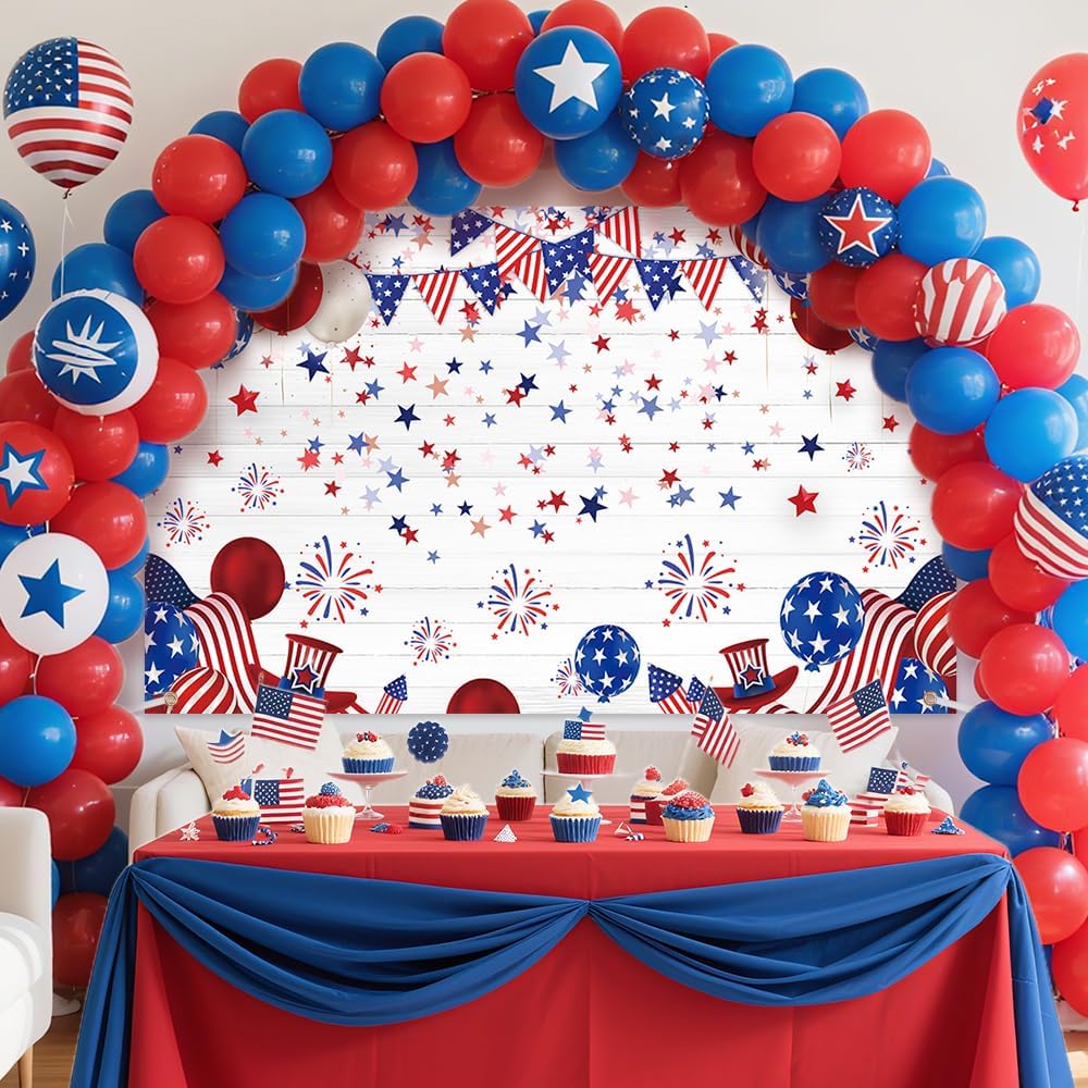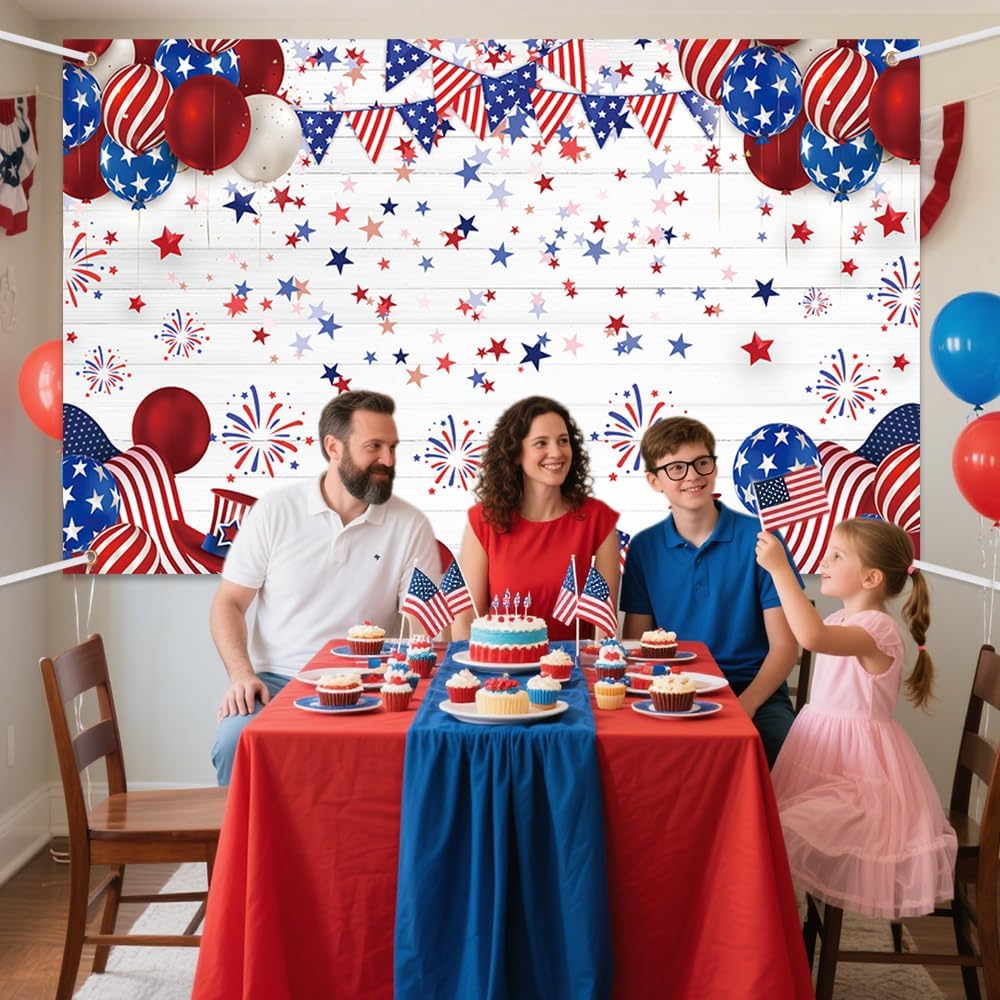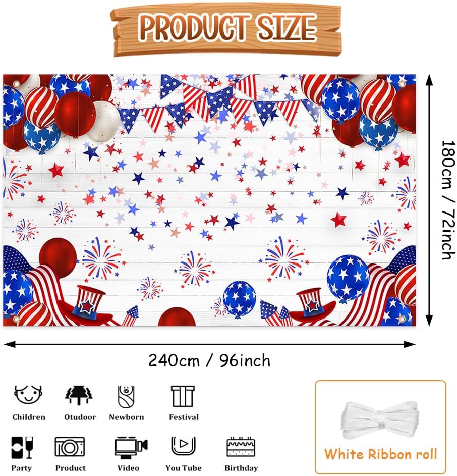 جودة عالية: خلفية الرابع من يوليو مصنوعة من نسيج بوليستر متين ، يسهل التنظيف والتخزين ، خفيفة الوزن وسهلة تحمل. تم تجهيز هذه الخلفية بأربعة حلقات نحاسية لتسهيل الإصلاح ، وليس من السهل الانحناء أو الكشف