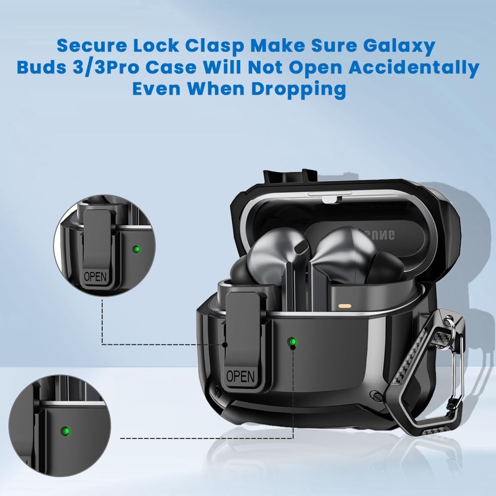 بالنسبة إلى Galaxy Buds 3 Pro/Buds 3 Case Cover 2025 ، Buds Galaxy Buds 3/3 Pro Pro Shard Cover Hard Cover With Keychain & Cleaner Kit for Men Women ، Black