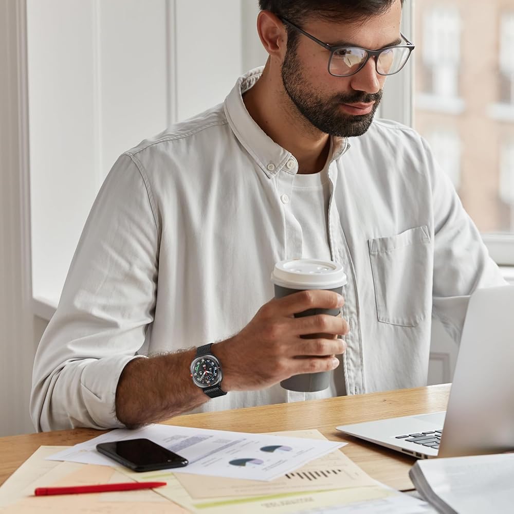 المادة المتميزة التي تمت ترقيتها: هذا بالنسبة إلى Galaxy Watch ، يعتمد فرقة Ultra Band من الفولاذ المقاوم للصدأ مضاد للانزلاق مع حواف تلميع رائعة للمظهر الأنيق. إن تصميم عملية النسيج الخشنة المطوّر هو جعل نطاق الساعات المعدنية أكثر قابلية للتنفس وصديق للبشرة وليخن وأكثر فاخرة.