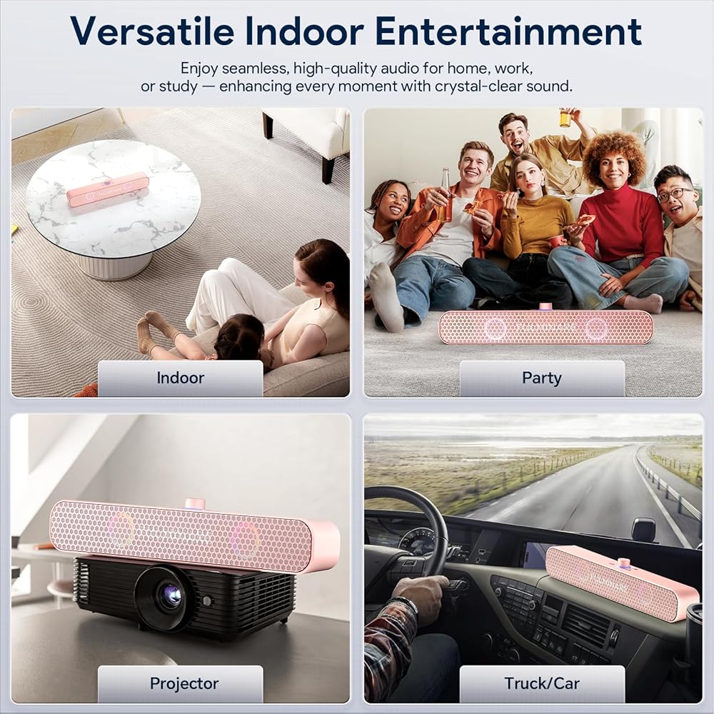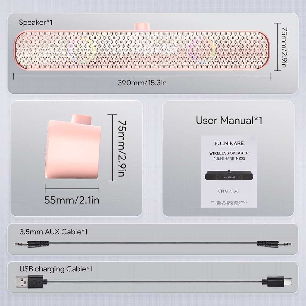مكبر صوت Fulminare Bluetooth مع صوت عالي الدقة 26W ، مكبر صوت محمول يصل إلى 30 ساعة ، مدخلات Aux & TF-Card & USB ، مصابيح LED ، مكبرات صوت Bluetooth 5.3 لاسلكية للمنزل/الحفلات/في الهواء الطلق ، هدية عيد ميلاد (وردي)