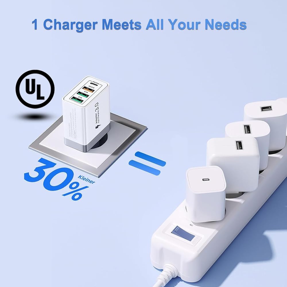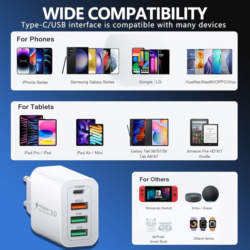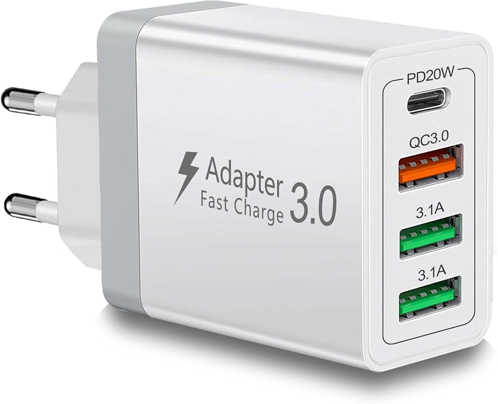 【Carzonjx 40W محول المكونات الأوروبية】: European Travel Essentials-4 Port Fast Charger Block ، يوفر هذا الشاحن الصديق للسفر منفذًا لـ USB C 20W Delivery 3.0 ، ومنفذ USB سريع الشحن 3.0 ومنافذ 2 5V 3.1A ، مع إجمالي إجمالي يصل إلى 40W ، والذي يمكن أن يلبي احتياجات مختلف الأجهزة. يمكن لواجهة 20W USB-C شحن جهاز iPhone الخاص بك من 0 ٪ إلى 60 ٪ في 30 دقيقة فقط!