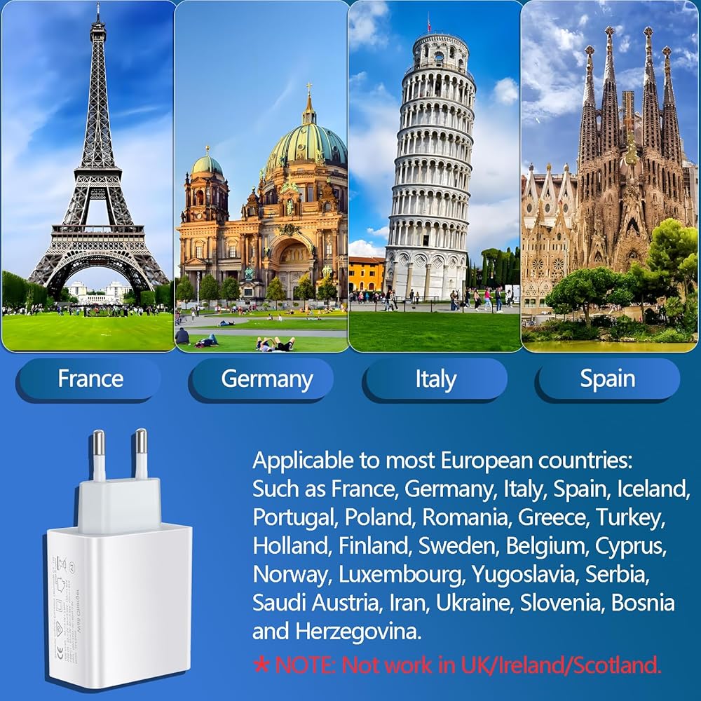 【يجب أن يكون السفر الأوروبي هو الشاحن الأوروبي USB مناسب لمعظم الدول الأوروبية ، مثل فرنسا ، ألمانيا ، إيطاليا ، إسبانيا ، أيسلندا ، البرتغال ، بولندا ، رومانيا ، اليونان ، تركيا ، هولندا ، فنلندا ، السويد ، بلجيكا ، قبرص ، لوكسمبورغ ، Yugoslavia ، الصلية ، Slane ، eran ، eran ، eran ، البوسنة والهرسك. ملاحظة: لا تعمل في المملكة المتحدة/أيرلندا/اسكتلندا.