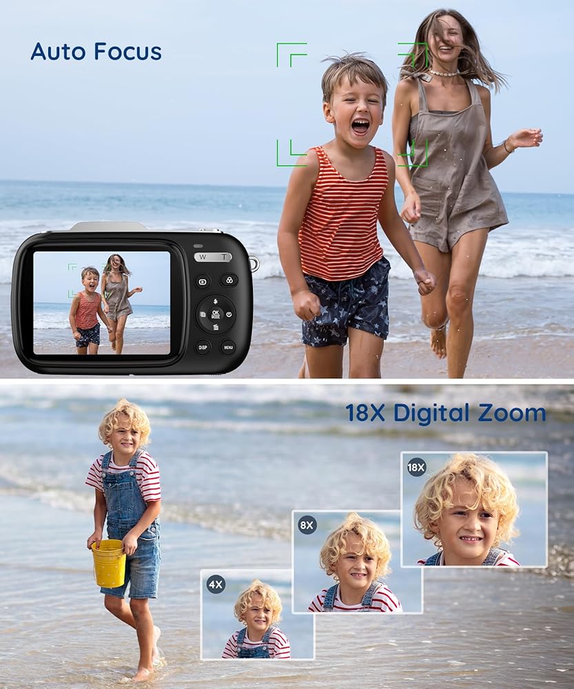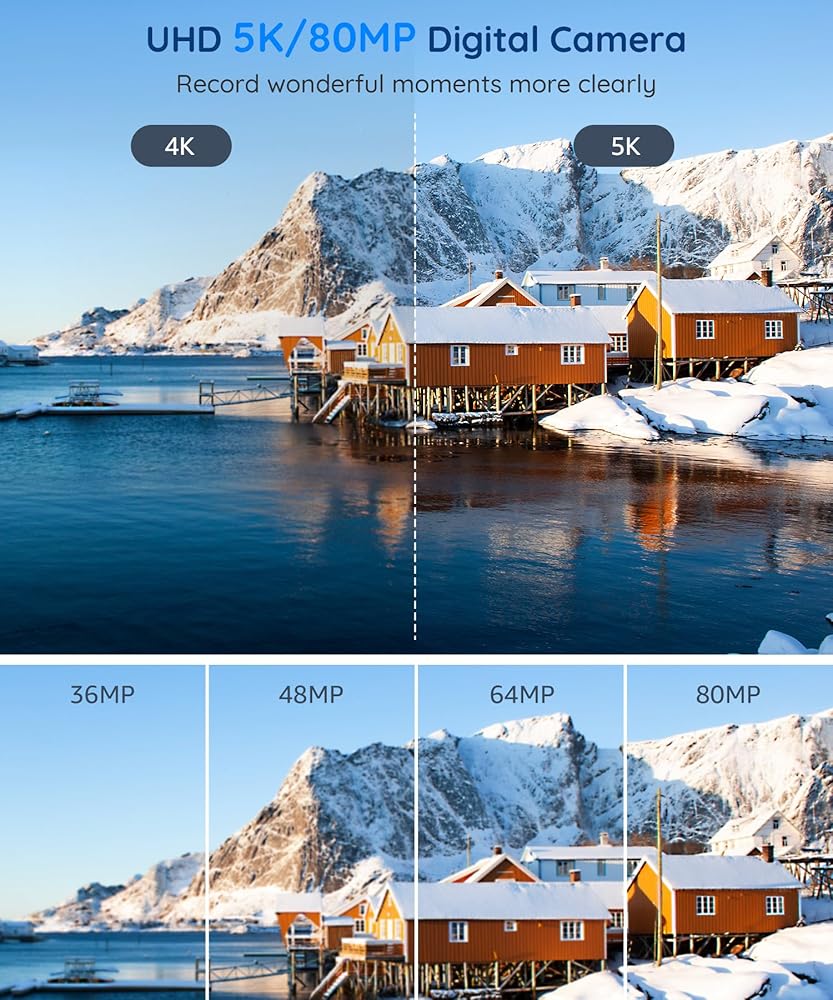 الكاميرا الرقمية ، نقطة UHD 5K 80 ميجابكسل واطلاق النار على الكاميرات الرقمية مع Zoom رقمي 18x ، بطاقة TF 64 جيجابايت ، كاميرا صغيرة مضغوطة للأطفال (أسود)