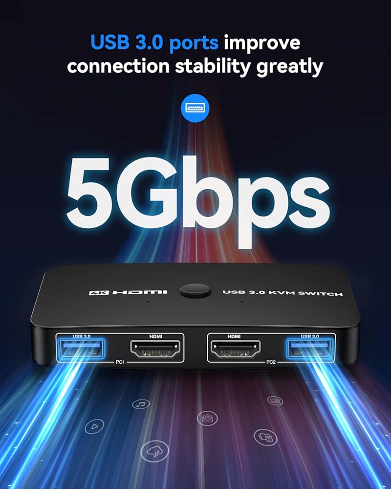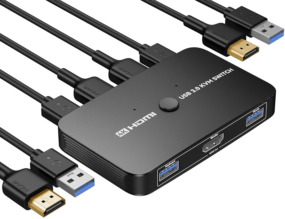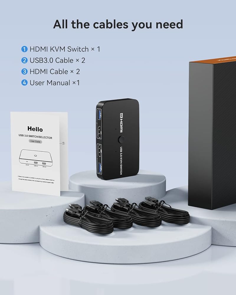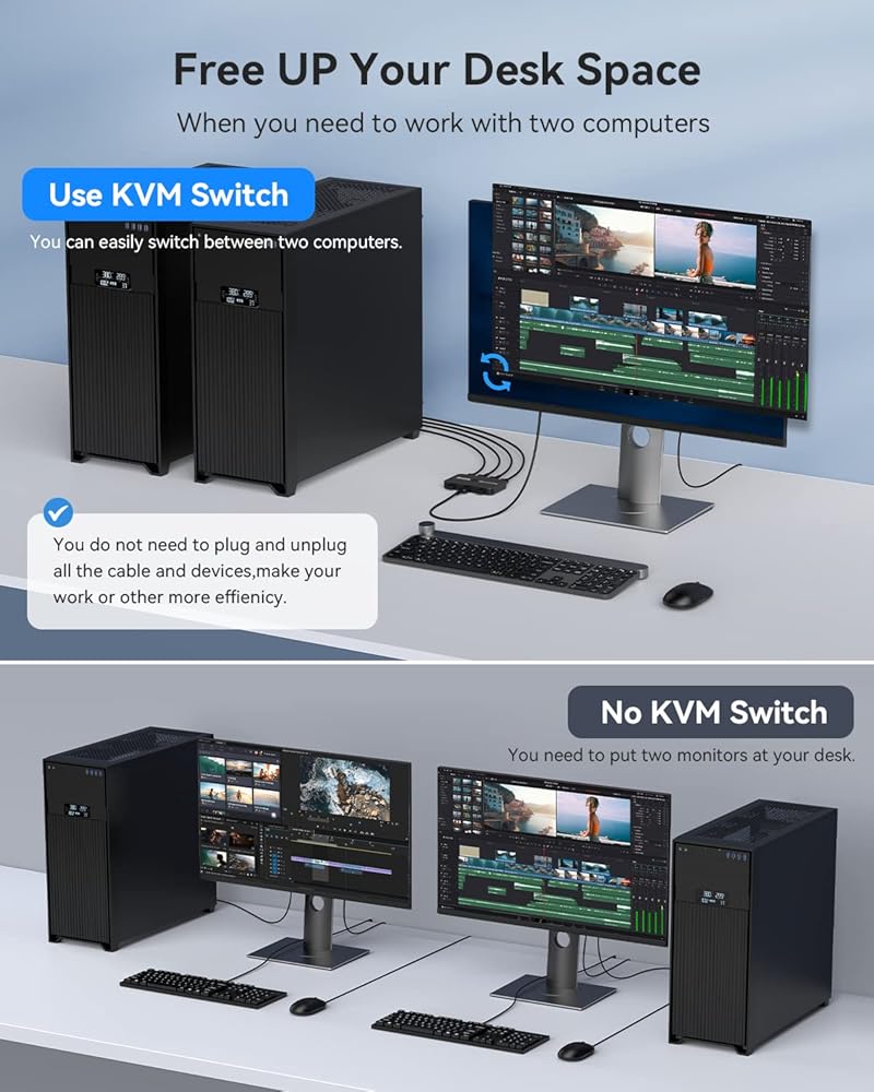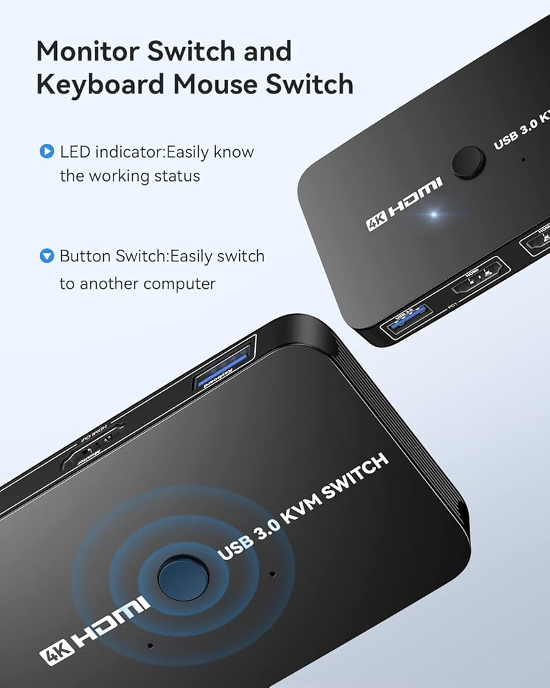 【تحرير مساحة مكتبك】 ablewe kvm switch احفظ مساحة مكتبك عندما تحتاج إلى استخدام جهاز كمبيوتر ، يمكنك التبديل بسهولة بين جهاز كمبيوتر وأجهزة USB دون كل الفوضى. لا حاجة لتوصيل كابل HDMI وفصله بعد الآن ، مما يجعل عملك أكثر ملاءمة وفعالية.