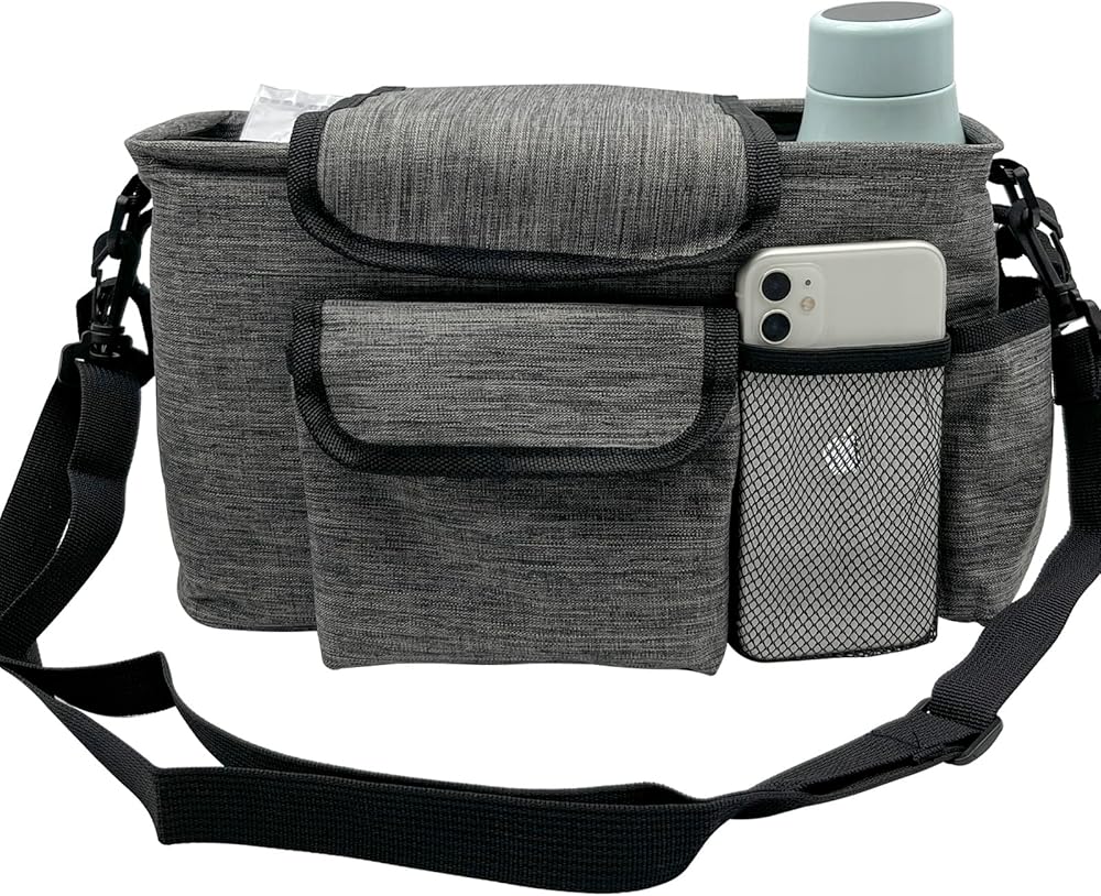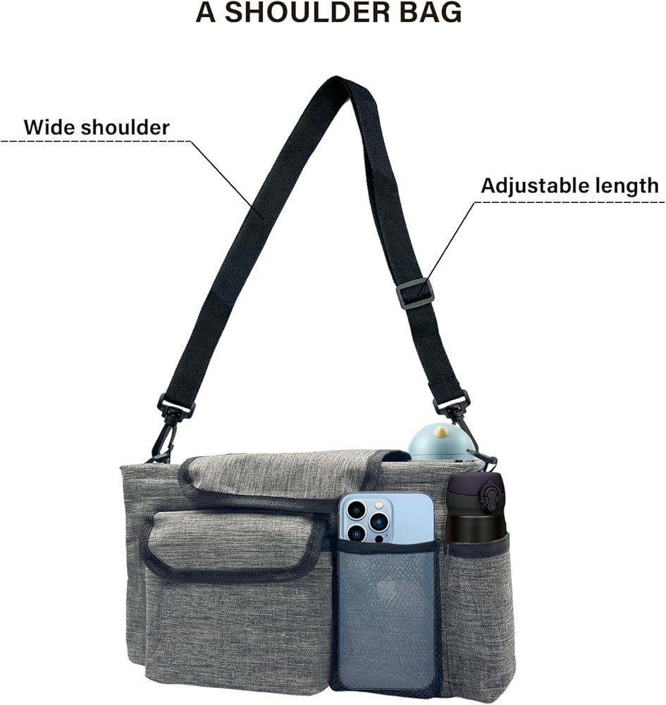 [متعددة الوظائف] يبلغ حجم الحقيبة الجانبية للكرسي المتحرك 31 × 20 بوصة وتحتوي على سبعة جيوب، مما يجعلها مناسبة لحمل العناصر الأساسية مثل الزجاجات وأكواب المياه والحفاضات واللهايات والهواتف المحمولة والألعاب الصغيرة.