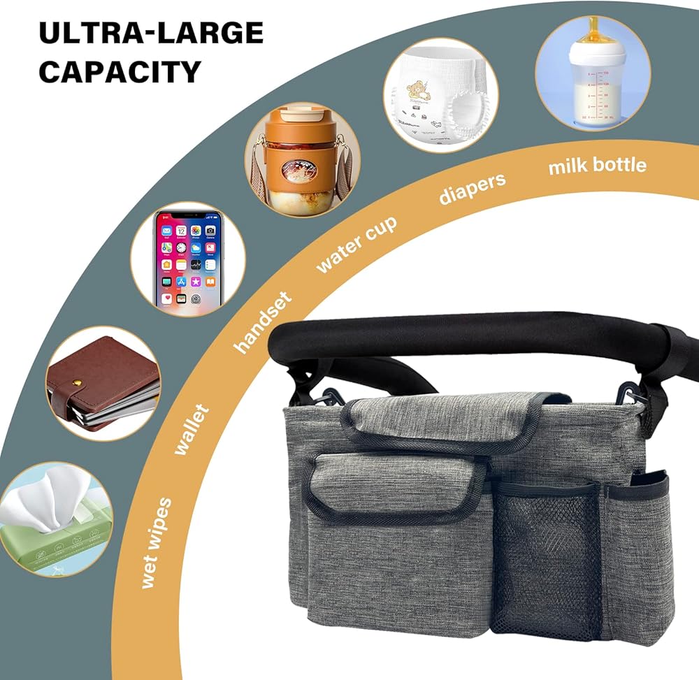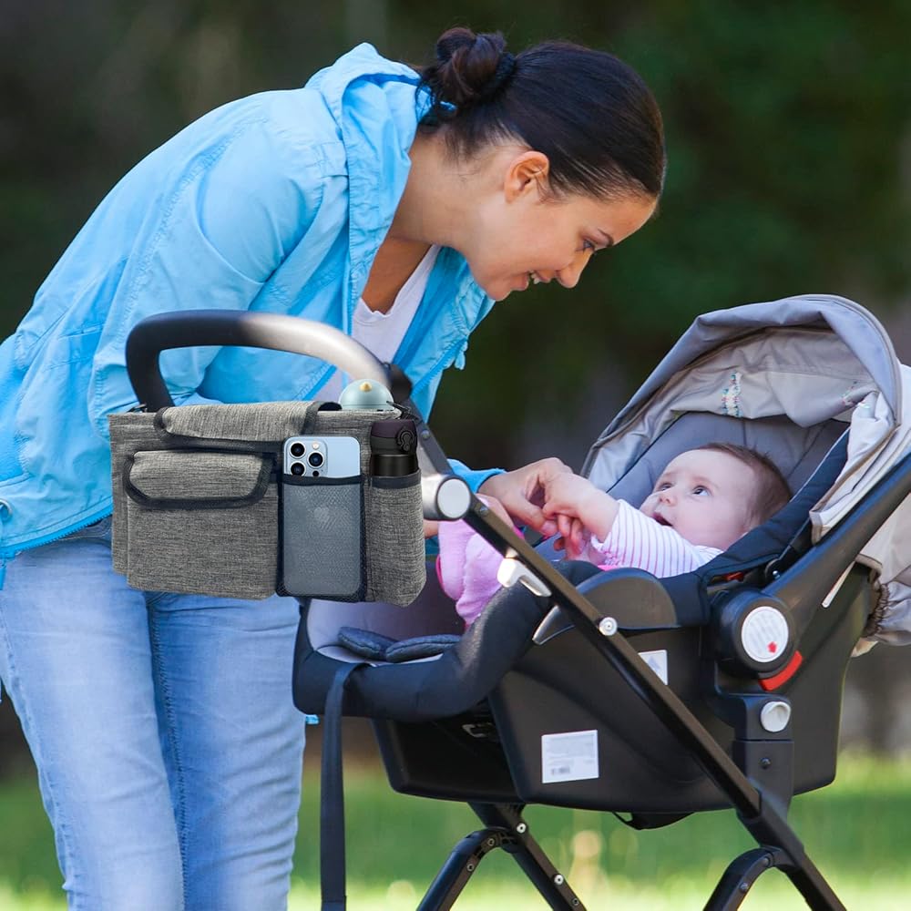 حقيبة تنظيم عربة الأطفال من ديزومو، مساحة كبيرة مع حاملي أكواب، جيوب متعددة بسحاب، تجهيزات خطافية أمان غير قابلة للانزلاق تناسب معظم عربات الأطفال