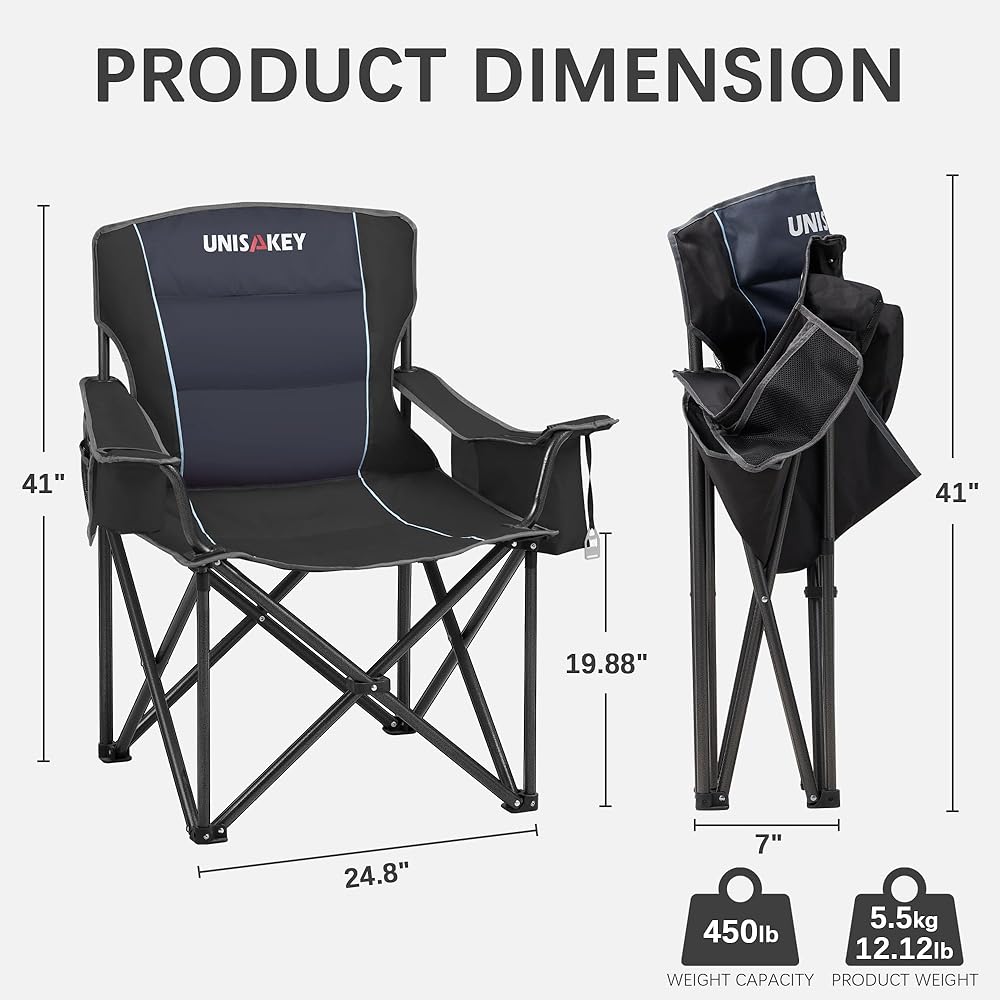 【الإعداد الفوري ومحمول فائقة المصممة للمعسكر والصيادين الذين يحتاجون إلى مقاعد سريعة ، لا يتطلب هذا الكرسي القابل للطي في الهواء الطلق أي تجميع-يتكشف في ثوانٍ. يأتي مع حقيبة حمل نايلون 600D المقوى ، الحجم المطوي لكراسي التخييم للبالغين هو 41 "× 7" ويزن 12.12 رطلاً فقط (5.5 كجم) ، وحل نضالات النقل الضخمة من أجل النقل دون عناء إلى البحيرات أو الممرات أو الحديقة