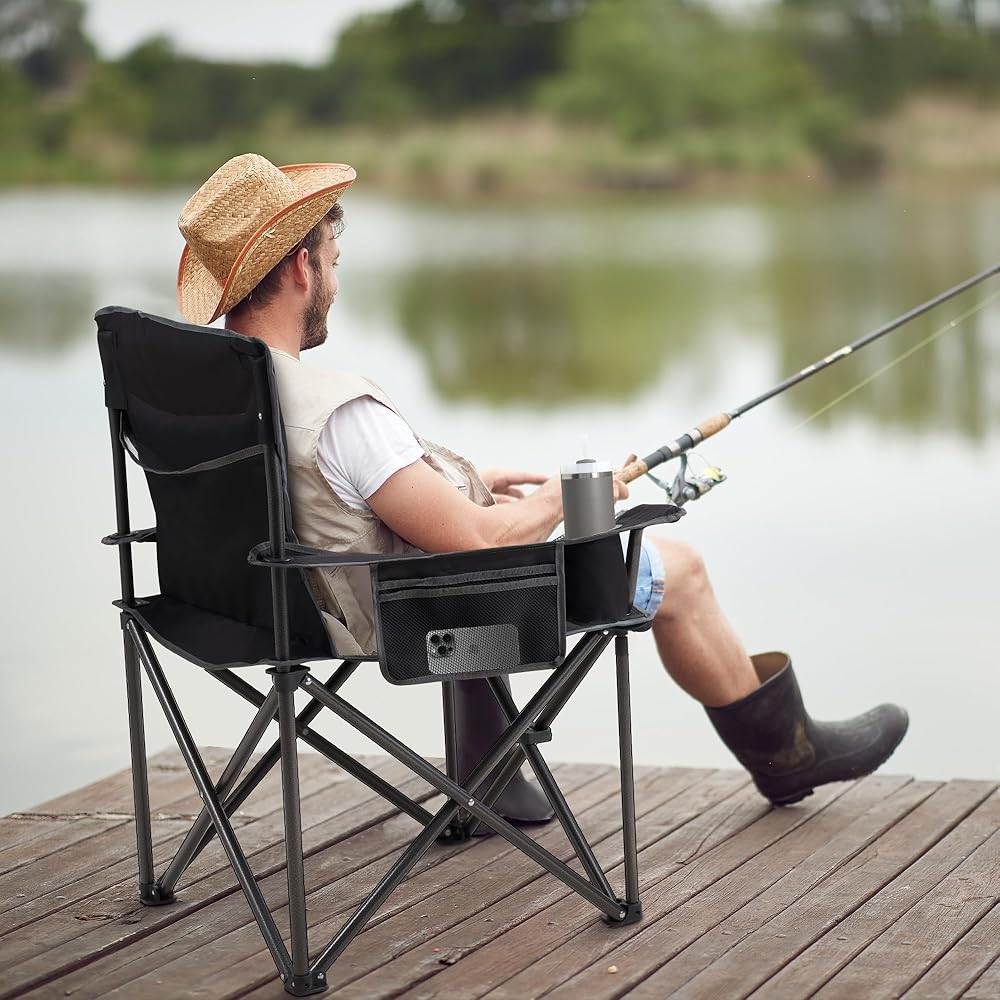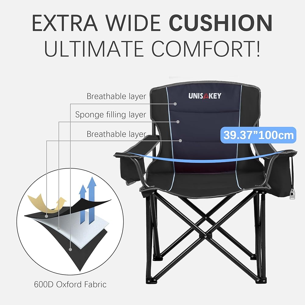 【الراحة الإضافية للاستراحة الطويلة】 قل وداعًا للمقاعد الضيقة-مقعد كرسي التخييم الضخم 39.37 بوصة مع حشوة 600D أوكسفورد ودعم القطني يهدئ جسمك خلال ماراثون الصيد لمدة 8 ساعات أو BBQS الخلفية
