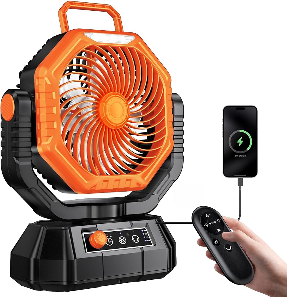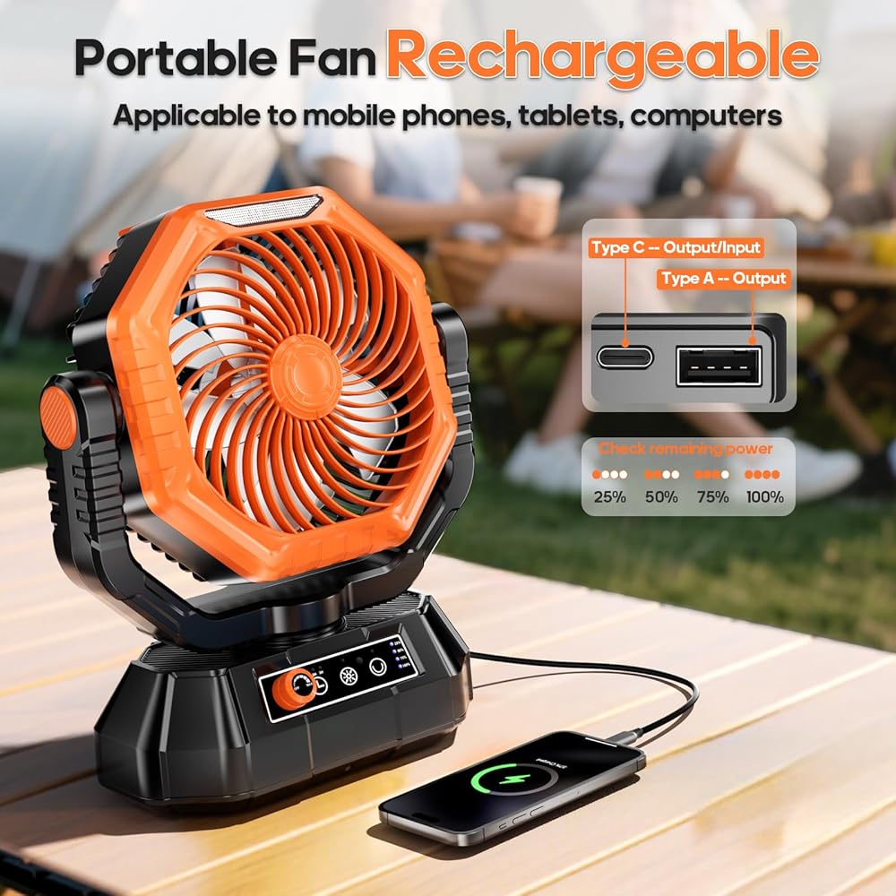 • 【بطارية 20000 مللي أمبير في الساعة مع شحن سريع : : تم تجهيز مروحة البطارية المحمولة التي تعمل بها البطارية ببطارية ضخمة 20000 مللي أمبير في الساعة ، مما يوفر وقت تشغيل ممتد. تستمر هذه المروحة المحمولة لبطارية السفر حتى 15 ساعة على شحن كامل. هذه البطارية عالية السعة تتضاعف أيضًا كبنك طاقة ، مما يتيح لك شحن أجهزتك الإلكترونية أثناء التنقل. لا مزيد من القلق بشأن هاتفك أو جهازك اللوحي ينفد من العصير أثناء مغامراتك الخارجية.