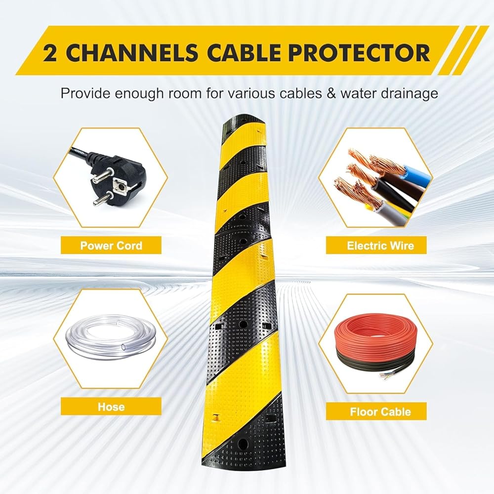 【تصميم وحدات قناة ثنائية القناة】 تتضمن هذه المجموعة نتوءات السرعة التي تبلغ مساحتها 72 "L x 11.8" W × 2 "H ، والتي تتميز بقنوات مزدوجة (1.18" × 0.98 ") لحماية حبال التمديد أو الخراطيم والكابلات من أضرار السيارة.