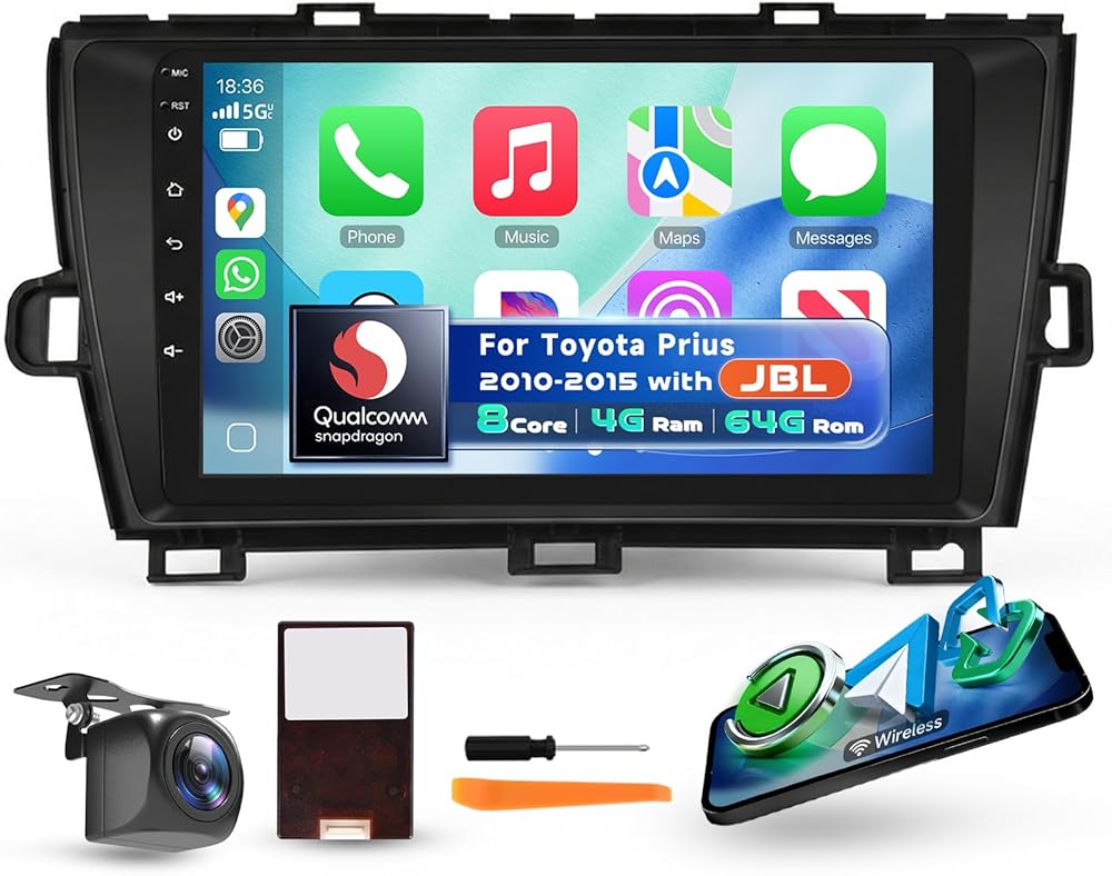 Stereo Carplay Car Stereo لـ Toyota Prius 2010-2015 مع JBL مع شاشة تعمل باللمس بحجم 9 بوصات ، [Qualcomm 8-Core 4+64GB] Upriding Android 13 Car Radio Android Auto BT5.1/DSP/HI-RES AUDIO/WIFI/SWC/GPS/OTA