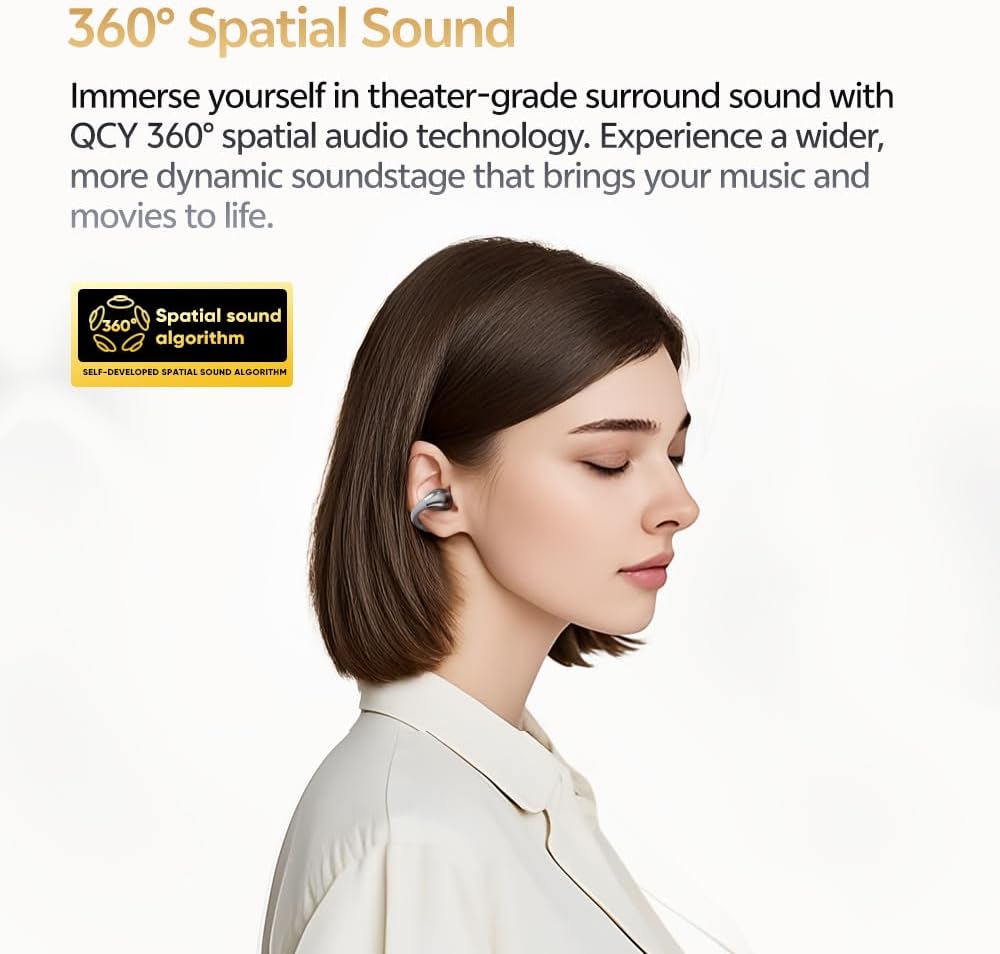 Qcy Crossky C30s Open Open Earbuds ، Clip Ultra-Comfort on Ear Buds Wireless Bluetooth 6.0 ، LDAC HI-RES Audio ، Bass Deep ، 40 H Time ، Charging Fast ، IPX5 Phoneproof/Running Plansones
