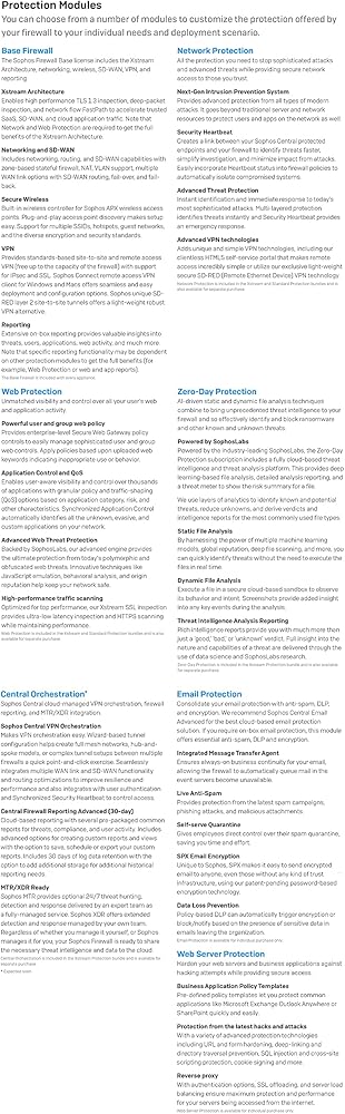 التفتيش العميق للحزم: أوقف أحدث الفدية والانتهاكات من خلال فحص حزم عميق عالية الأداء ، بما في ذلك IPs من الجيل التالي ، وحماية الويب ، والتحكم في التطبيق ، بالإضافة إلى التعلم العميق وصناديق الرمل التي تعمل بواسطة Sophoslabs Intelix.