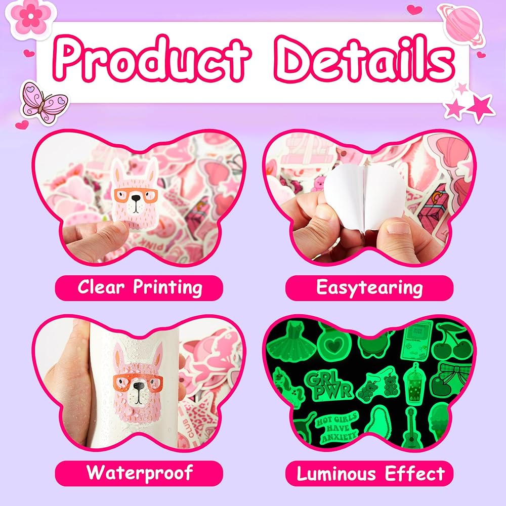 【الديكور الرائع】 يمكن استخدام هذه الملصقات لأجهزة الكمبيوتر المحمولة ، وزجاجات المياه ، والمرايا ، والأمتعة ، وألواح التزلج ، والثلوج ، والخوذات ، وحالات الهاتف الخليوي ، وكتب القصاصات ، ولوحات المفاتيح ، والقيثارات ، وأي شيء تريد تزيينه ، وتلبية احتياجاتك المختلفة. هذه الملصقات الوردية هي هدية مثالية لأصدقائك ، النساء ، الأطفال!