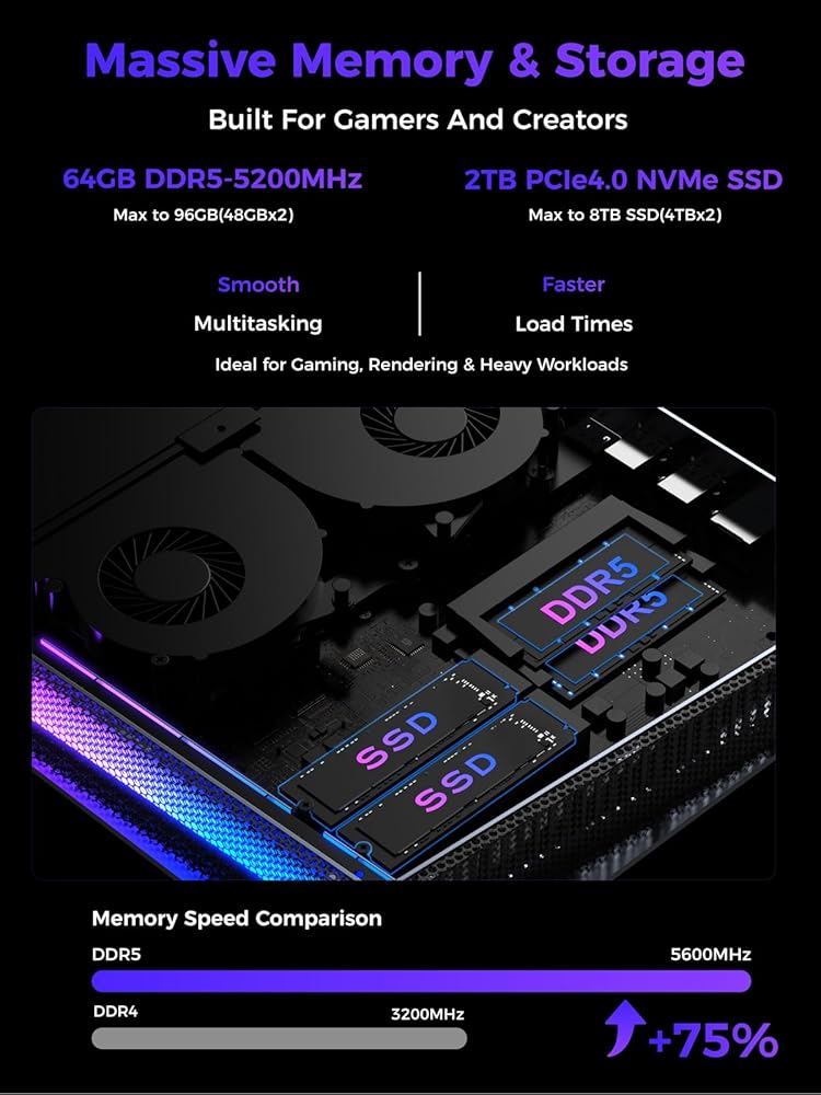📌 [32GB DDR4 + 1TB M.2 NVME PCIE 4.0 SSD] يحتوي Topgro T1 Mini Gaming PC على قناة مزدوجة 32 جيجا بايت DDR4 RAM (تمتد حتى 64 جيجابايت) و 1 تيرابايت M.2 NVME PCIE4 فتحة إضافية 2x M.2 2280 SSD ، قابلة للتوسيع حتى 8 تيرابايت.