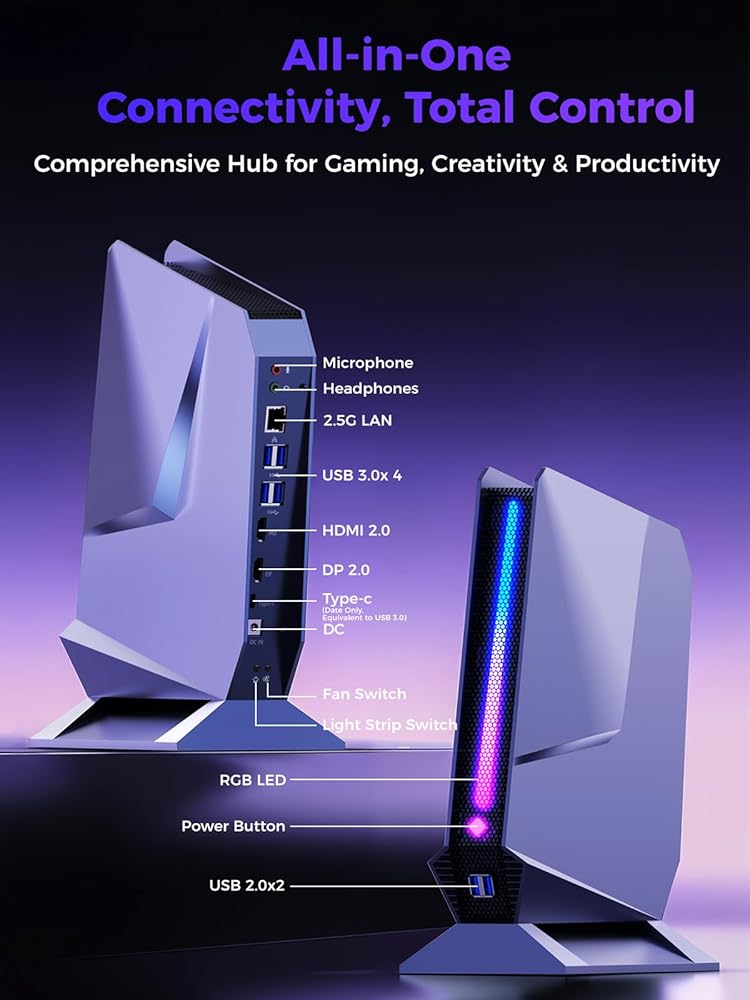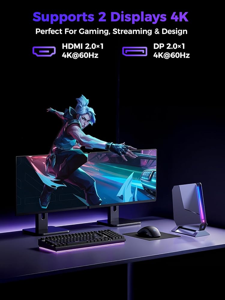 📌 [4K UHD & 3 Supports Support] يتميز جهاز الكمبيوتر T1 Mini Gaming PC 2 X HDMI 2.0 (4K 60Hz) و 1 X USB-C (4K 60Hz) ، مما يسمح للمستخدمين بتوصيل ما يصل إلى ثلاثة شاشات في وقت واحد إلى المهام المتعددة ، واللعب ، والاستمتاع بأكثر وضوحًا. يوفر منفذ USB-C على جهاز Mini-PC عددًا من الفوائد ، بما في ذلك واجهة مريحة وقابلة للانعكاس ونقل البيانات بشكل أسرع والأداء العالي والتوافق الواسع مع الأجهزة الطرفية اليوم.