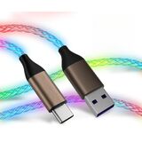 USB C Charger Cable LED LED UP شاحن سلك مرئي 60 واط RGB التدريجي تغيير ساطع 3A شحن سريع USB A إلى USB C سلك مزامنة بيانات iPhone 15/16 、 Samsung Galaxy SS23+/S23 Ultra (3 قدم)