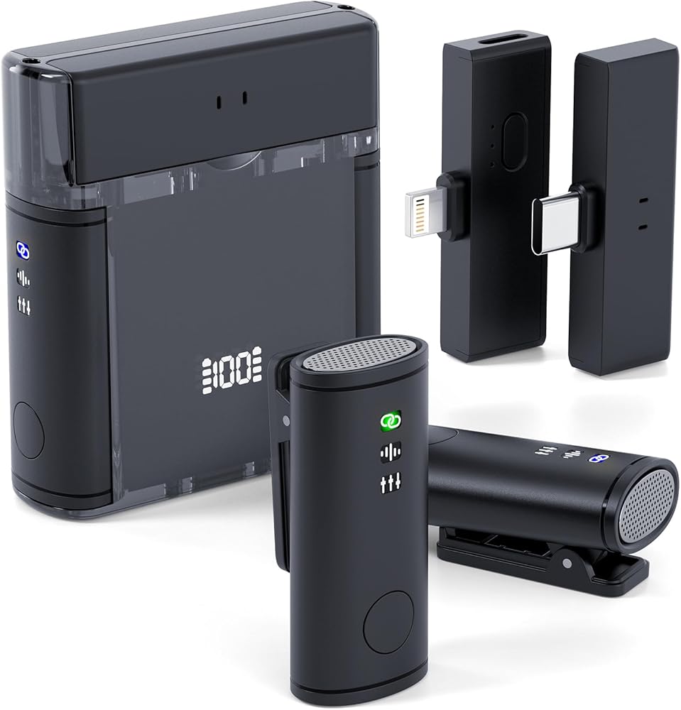Rythflo Wireless Lavalier Microphone for iPhone/Android/iPad (2 TX + 2 RX + Charging Case), Mini Mic with Noise Reduction, 22H Battery, 131ft Range, Lapel Microphone for Video Recording, Vlog