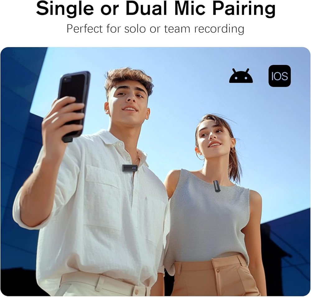 التوافق الواسع لأي جهاز: يشتمل الميكروفون اللاسلكي لأجهزة iPhone و Android و DSLR وأجهزة الكمبيوتر المحمولة على أجهزة استقبال Lightning و USB-C و 3.5 مم TRS. إنه يضمن توصيل التوصيل والتشغيل السلس عبر جميع المنصات الرئيسية